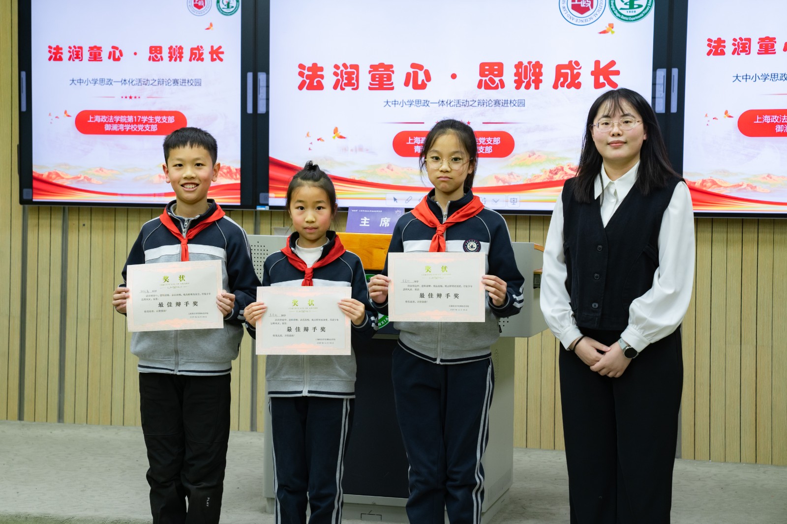 此次辩论赛是双方党支部继专题党课后,在思政育人形式上的又一次创新探索。上政第17学生党支部的理论资源、思辨优势和御澜湾学校党支部的实践阵地、育人需求在活动中深度融合。大学生党员在指导实践中深化了对思政教育的理解,小学生们也在思辨互动中筑牢了法治认知根基。