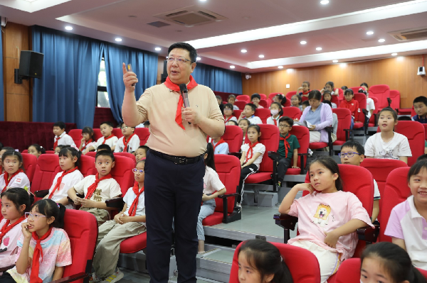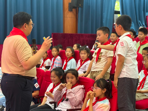 在互动环节, "小小天文迷"们争相提问:"黑洞会吞噬地球吗?""我们能穿越虫洞吗?"“外星人真的存在吗?”“我们未来能住在火星上吗?”王教授耐心解答每一个问题,还引导孩子们想一想、比一比、算一算、说一说,开动脑筋自主探索科学问题,尝试解开谜题。王教授称赞孩子们知识面较广,科探兴趣浓厚。