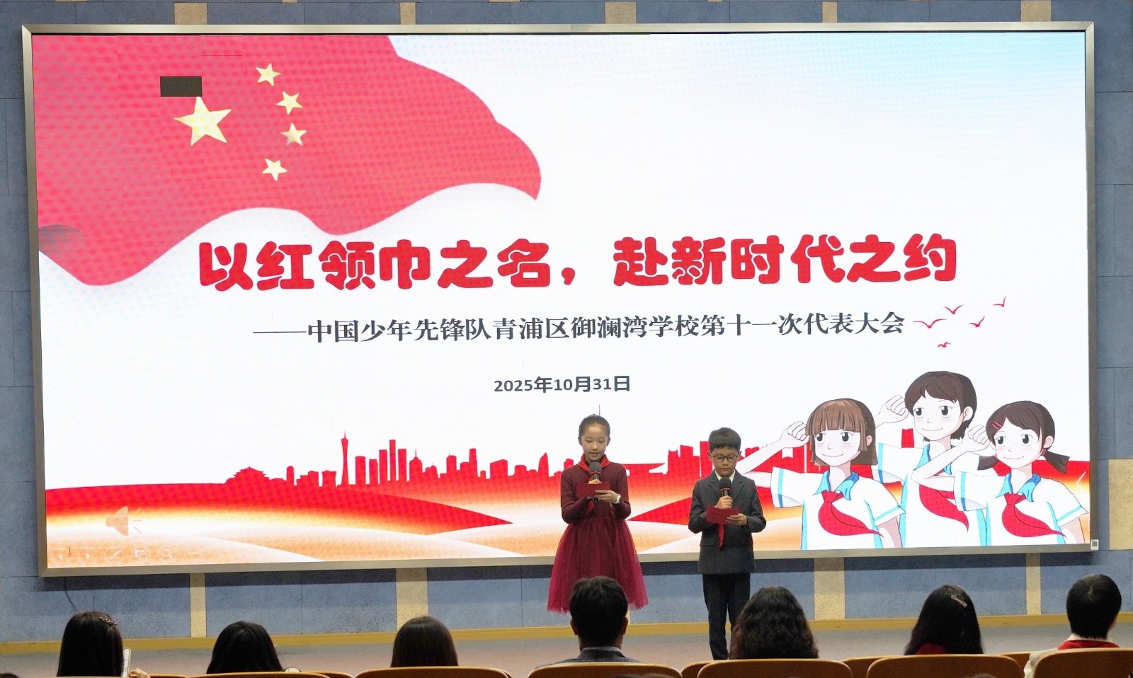 金秋十月,领巾飘扬,中国少年先锋队青浦区御澜湾学校第十一次少先队代表大会在全校师生的期盼中圆满落幕。大会以“以红领巾之名,赴新时代之约”为主题,分预备会与正式会两个阶段有序开展,展现了新时代少先队员的责任与担当。