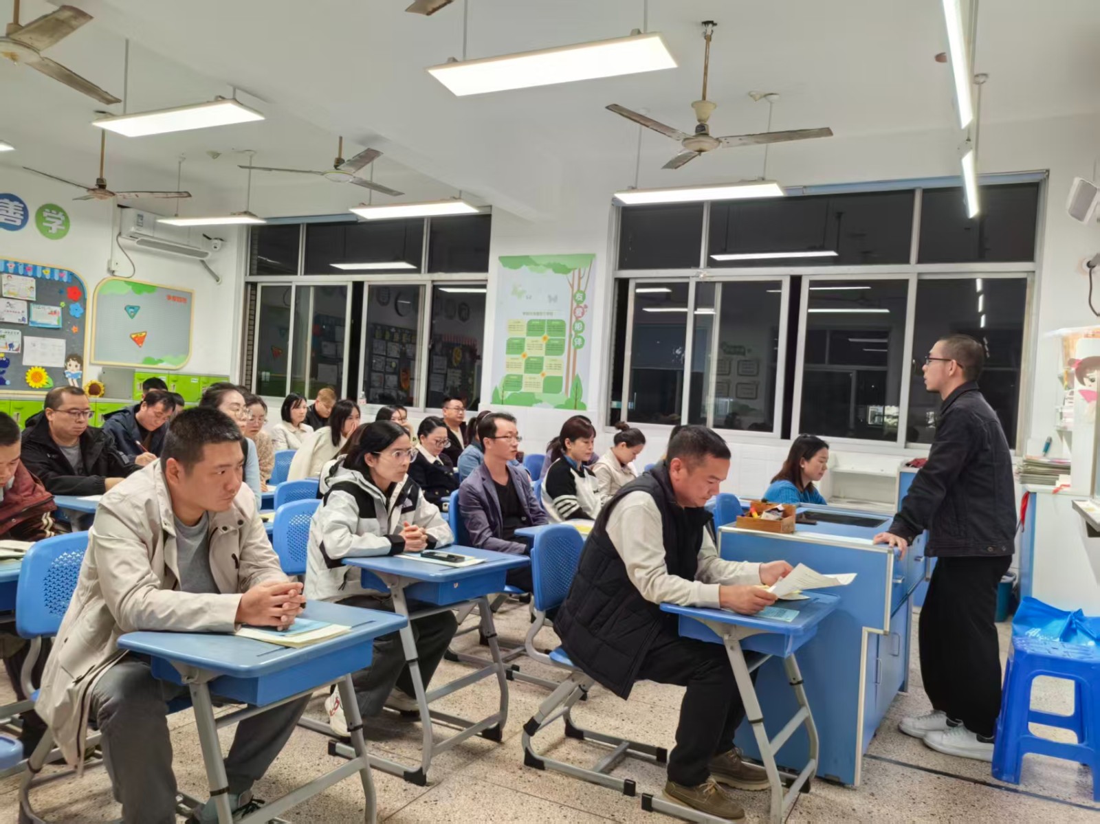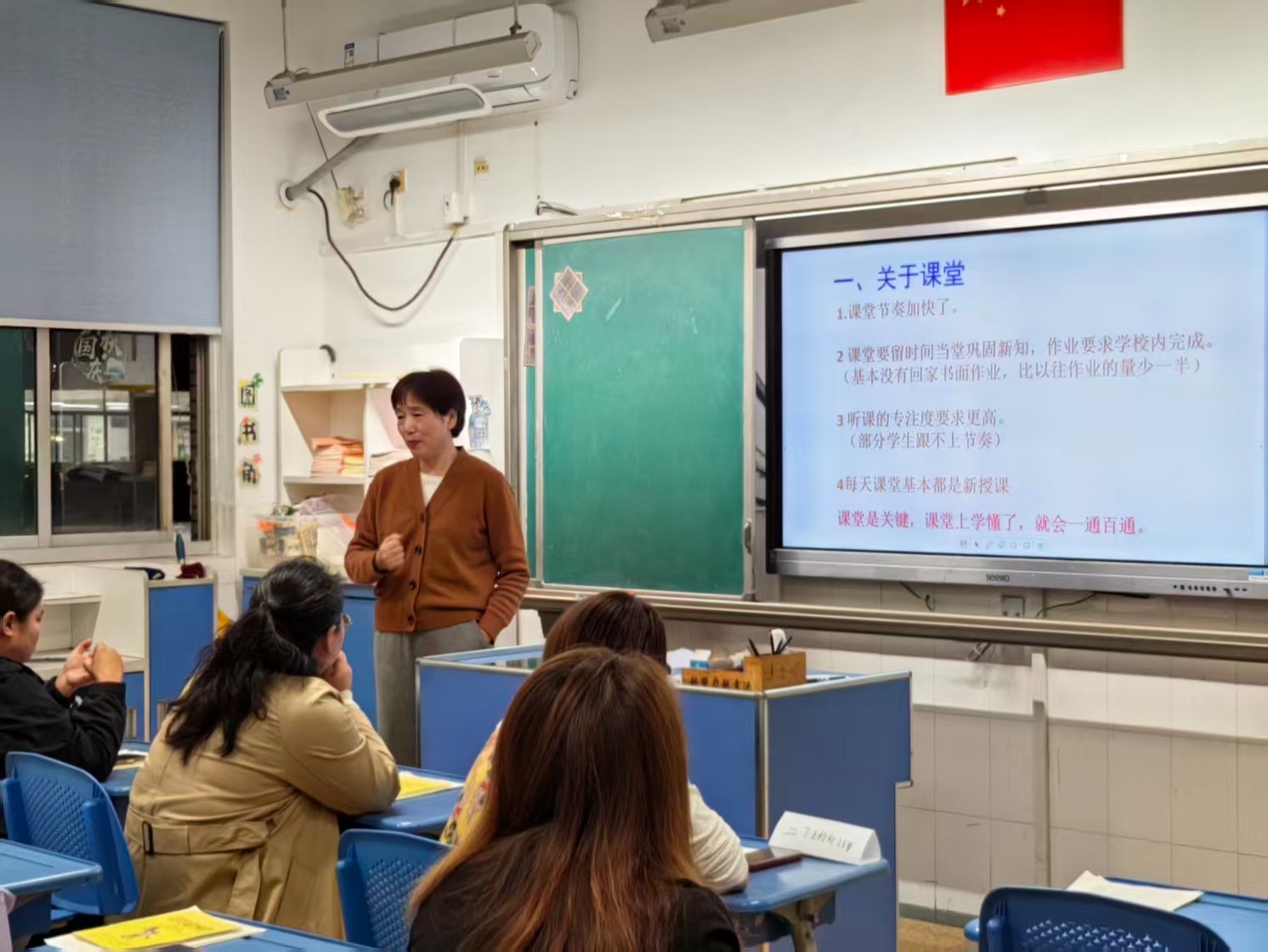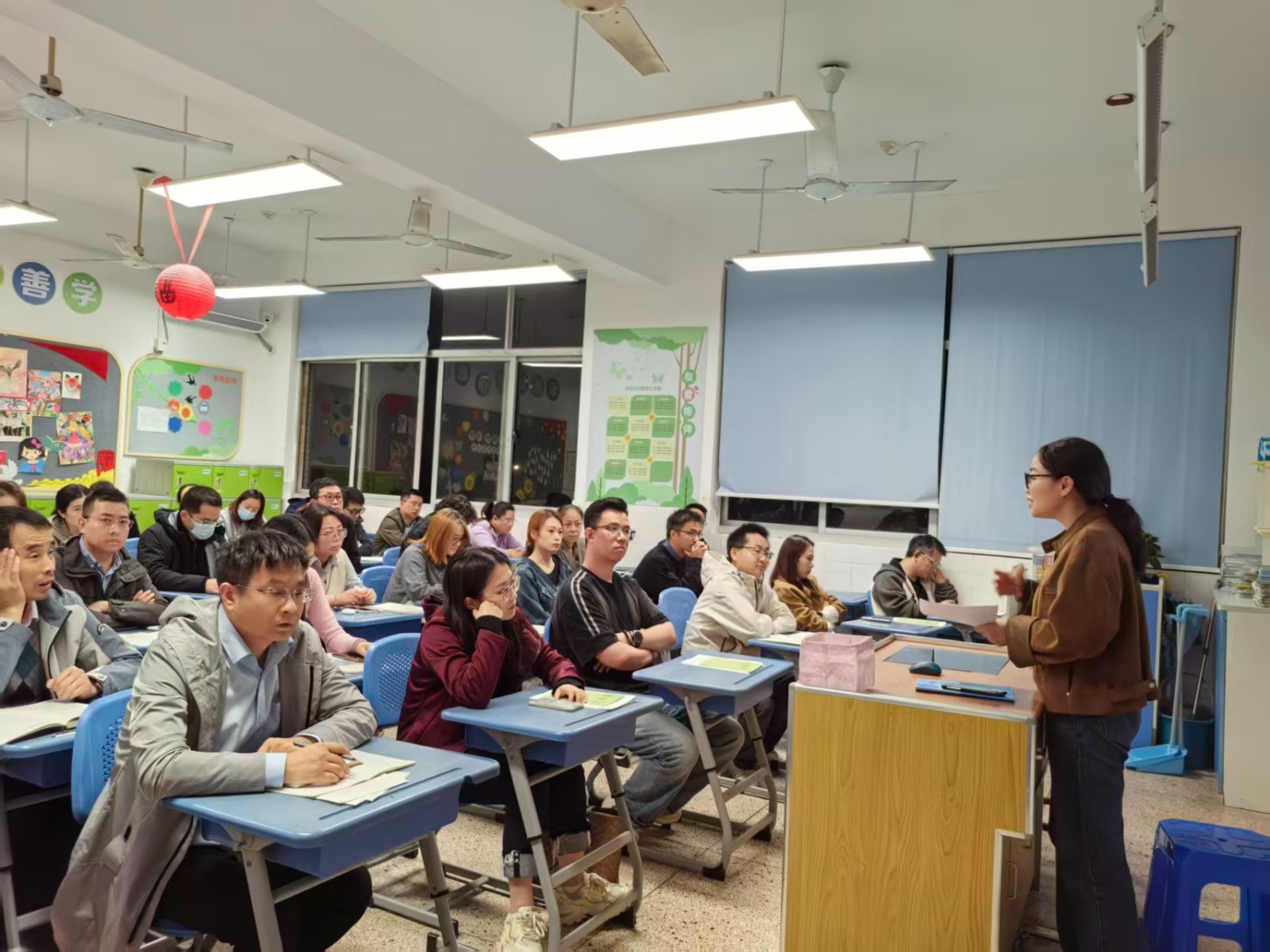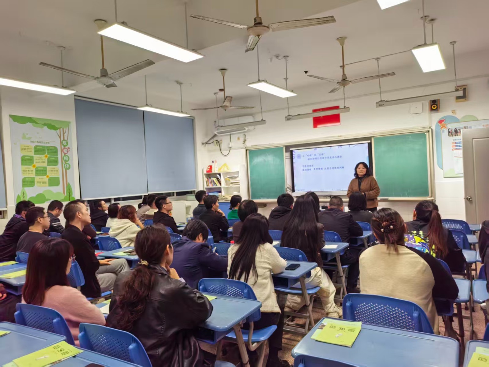 随后,各个班级展开了热烈的互动与交流环节。走进各班教室,暖意扑面而来:电子屏上循环播放着孩子们课间游戏、课堂专注的纯真笑颜;墙壁上错落有致地陈列着书画、手工作品等成长印记。家长们纷纷驻足观赏,不时与身旁同伴轻声交流着孩子的点滴变化,温馨融洽的氛围在教室里悄然蔓延。语文、数学、英语学科的老师们,结合半学期来的细致观察,向家长们全面反馈了孩子的学习状态:从课堂表现到作业质量,从优势亮点到提升空间,每一处细节都饱含着老师的用心。当听到孩子获得的肯定、看到字迹工整的优秀作业,或是了解到孩子在知识积累、习惯养成上的进步时,家长们的脸上无不绽放出欣慰的笑容,更深深体会到老师们日复一日的悉心耕耘与对孩子真挚无私的关爱,这份双向的理解与感动萦绕在每个人心头。此外,各班班主任还精心筹备了针对性极强的家长学校微讲座,围绕 “学习习惯的科学培养”“亲子沟通的秘钥”“高质量陪伴” 等话题,分享实用经验与专业见解。丰富详实、贴近需求的内容,赢得了家长们一次次热烈的掌声,也让家校携手、同心育人的美好愿景在交流中愈发清晰。