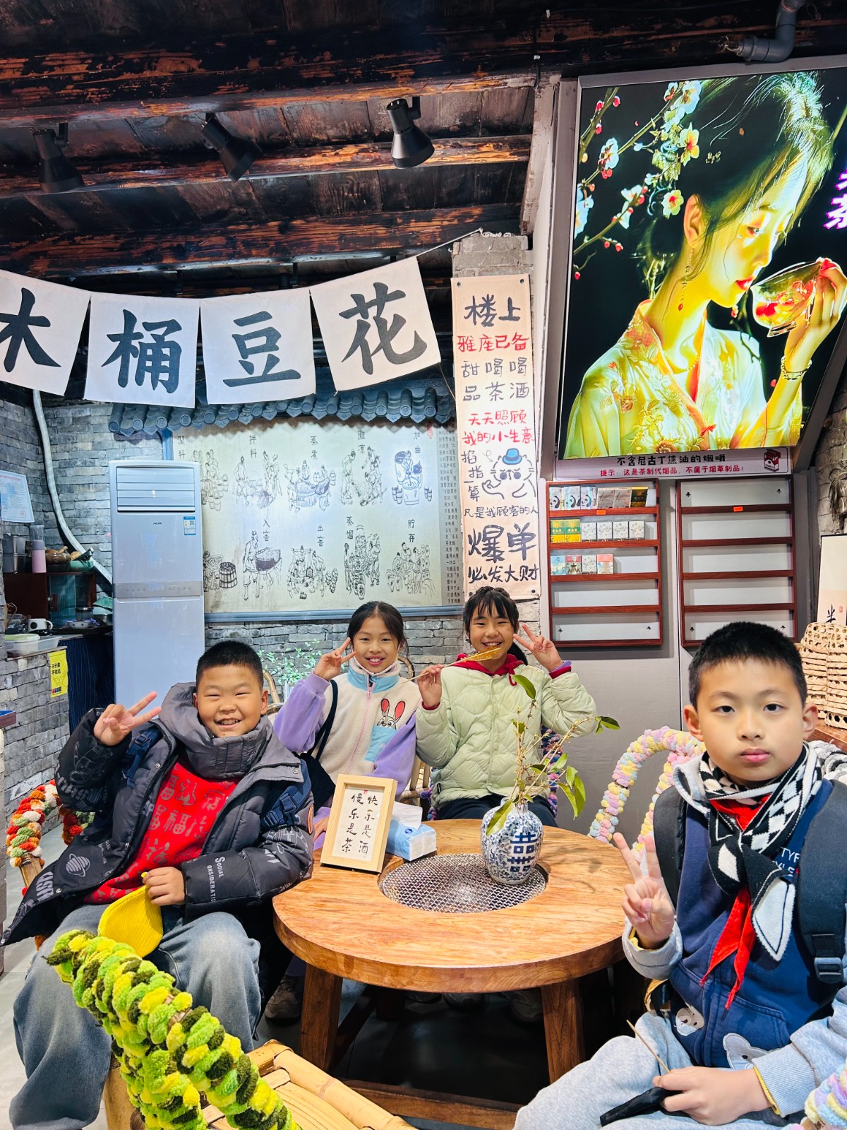 活动尾声,同学们都满载而归,有的带回印有古镇风光的文创书签,有的精心挑选了古镇的特色美食,希望将古镇的味道与记忆分享给父母。这次活动不仅让孩子们近距离触摸了家乡的历史肌理,在探究中培养观察能力与合作意识,还让同学们在发现美、记录美的过程中加深了对家乡的热爱。