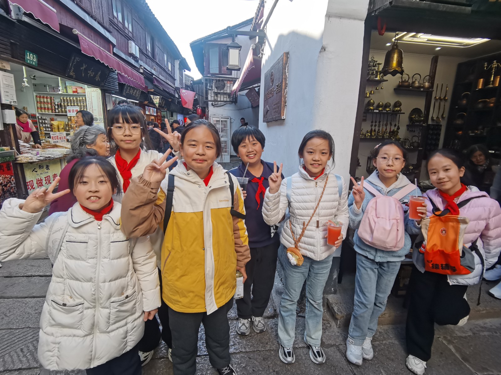 11月19日,五年级师生共同走进被誉为“江南明珠”的朱家角古镇,开展社会实践探究活动,在青石板路与潺潺流水中感受古镇独特韵味。