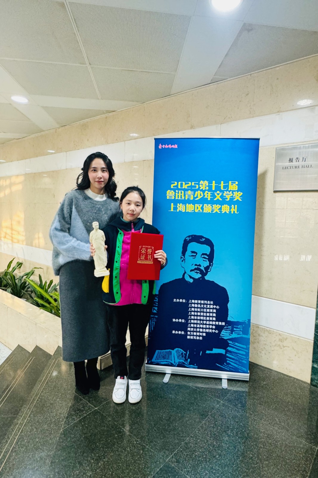 这份对文字的热爱、对创作的坚守,以及刨根问底的探索精神,终于让她在激烈的竞争中脱颖而出,获得小学组唯一一个特等奖,站上了鲁迅文学奖的领奖台。