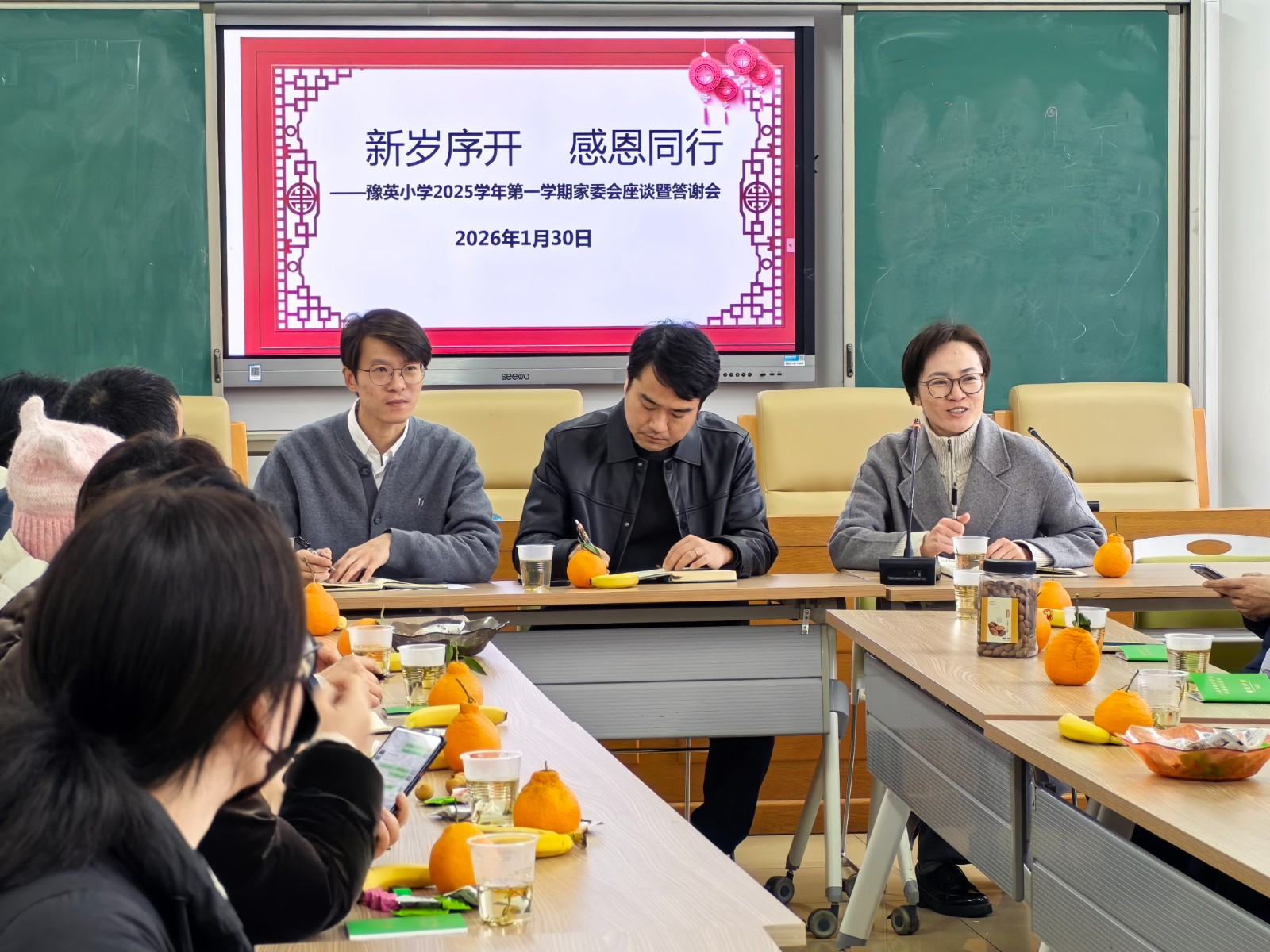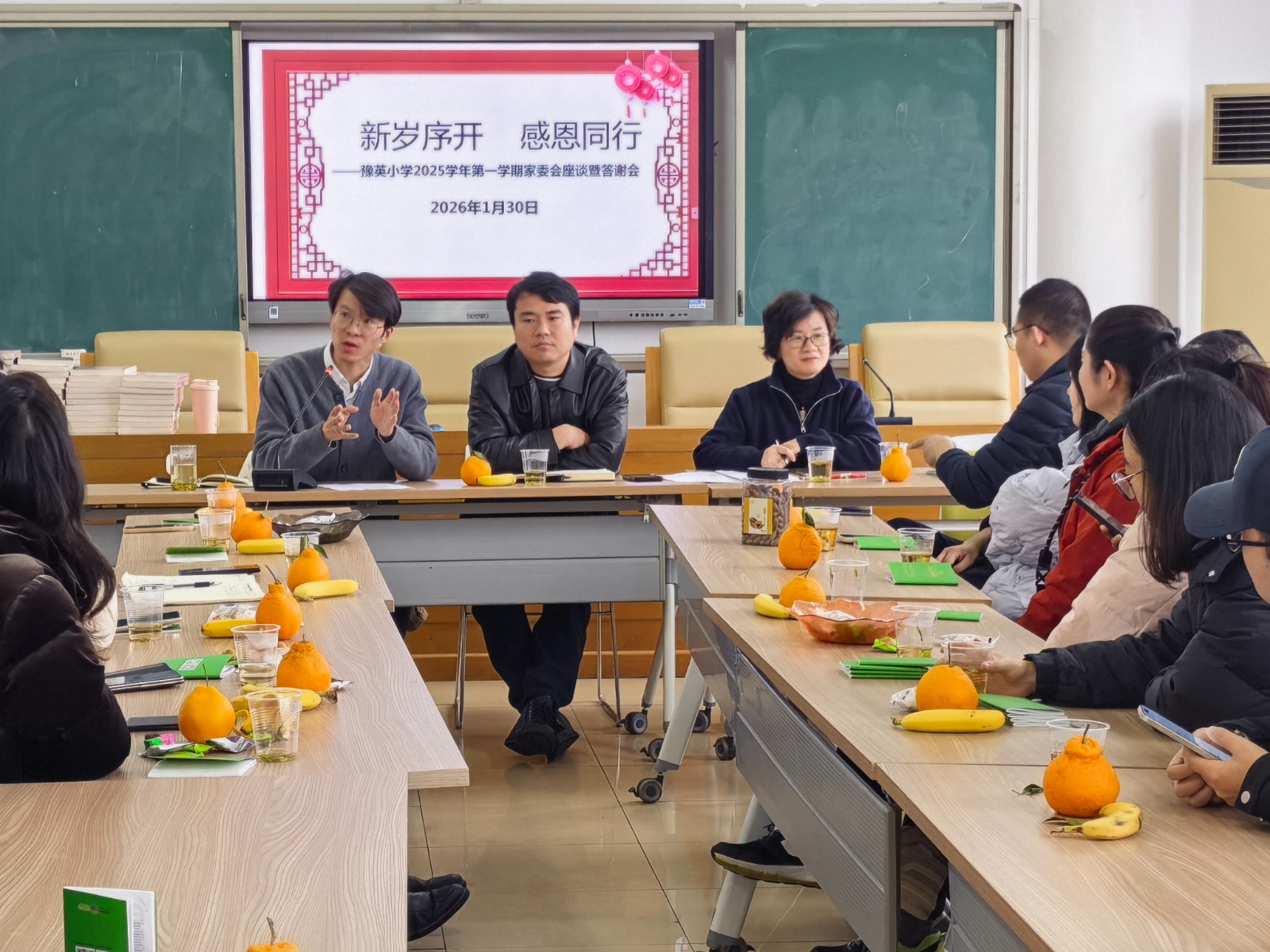 新岁将至,暖意融融。2026年1月30日上午,青浦豫英小学召开“新岁序开,感恩同行”2025学年第一学期年级家委会会议。党支部书记、校长徐剑兰、党支部副书记蒋丰呈、家委会主任张彬、德育处主任朱欢,以及全体年级家委会委员齐聚一堂,共话家校协作,共绘育人蓝图。会议由张彬主持。