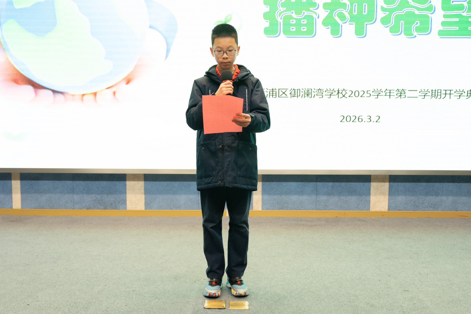随后,顾文荣校长为全体同学上了一堂生动的大思政课,字字句句饱含期许,语重心长传递力量。他寄语每一位御澜湾人,新学期要以奋斗为犁,以梦想为种,在校园的沃土上播种希望,在成长的道路上收获芬芳。同时,顾校长向同学们提出三点殷切希望:以好奇为种,播撒创新的希望;以拼搏为犁,耕耘成长的田野;以团结为光,照亮前行的道路,鼓励孩子们在新的学期里脚踏实地、奋勇争先。