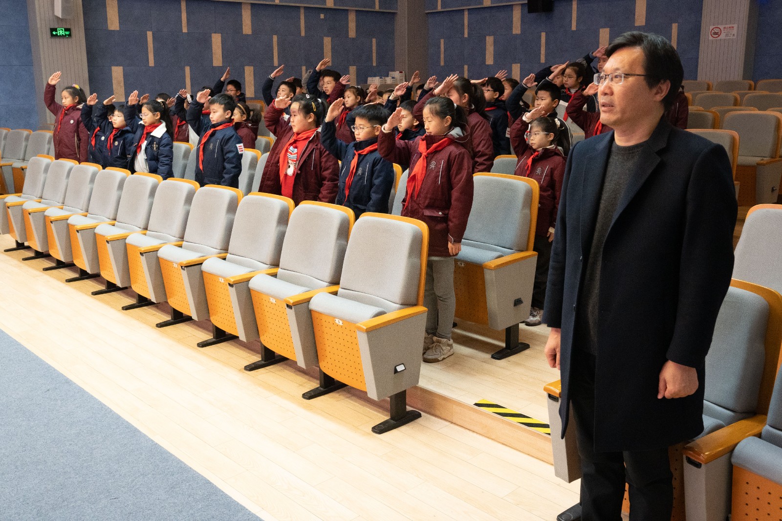 2026年春季开学典礼在暖意融融的多功能厅内正式拉开帷幕。伴随着五(6)中队陆奕帆同学清亮的开场声,全体师生齐聚一堂,共同迎接新学期的到来,开启一段充满希望的成长新征程。
