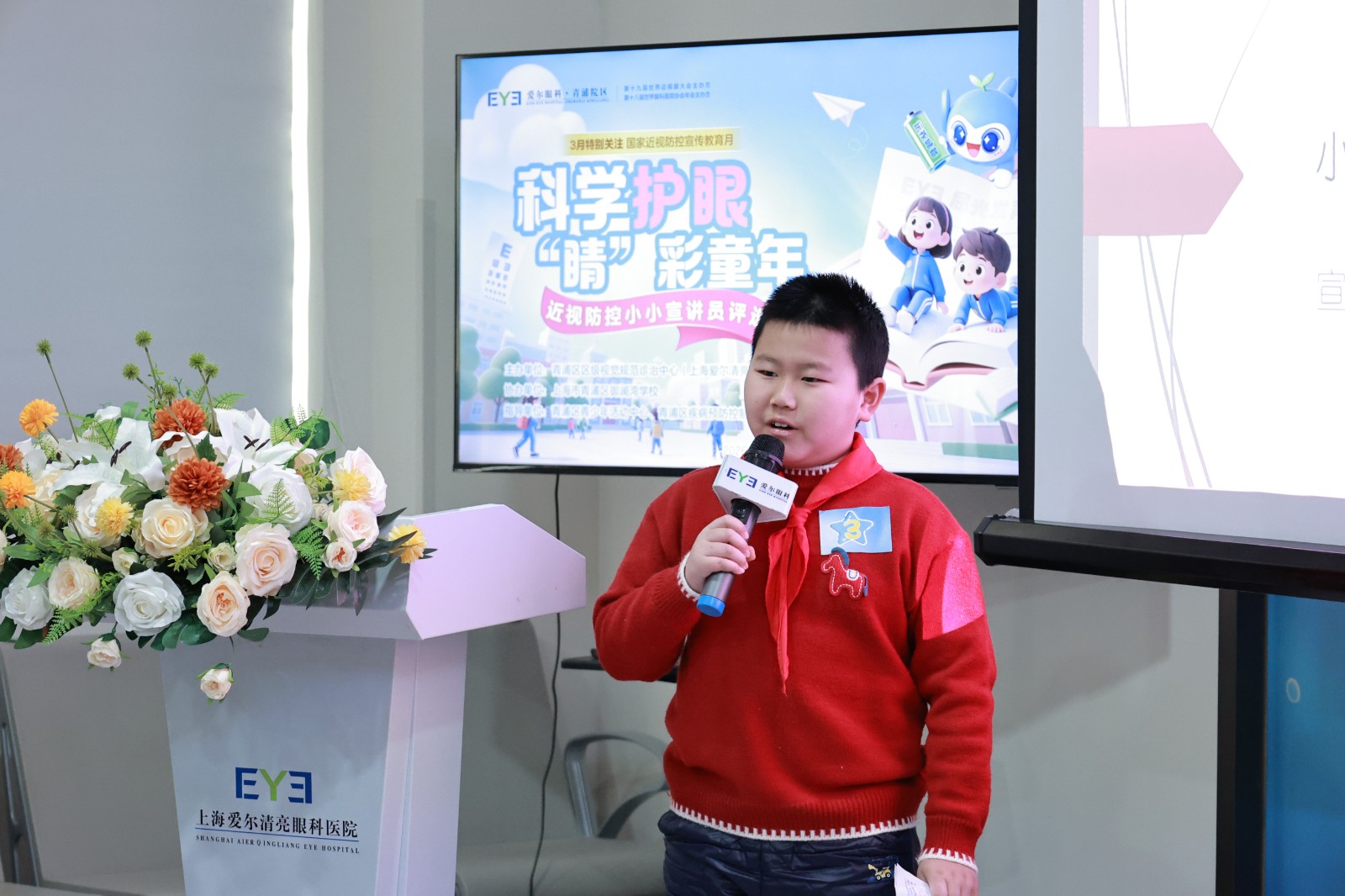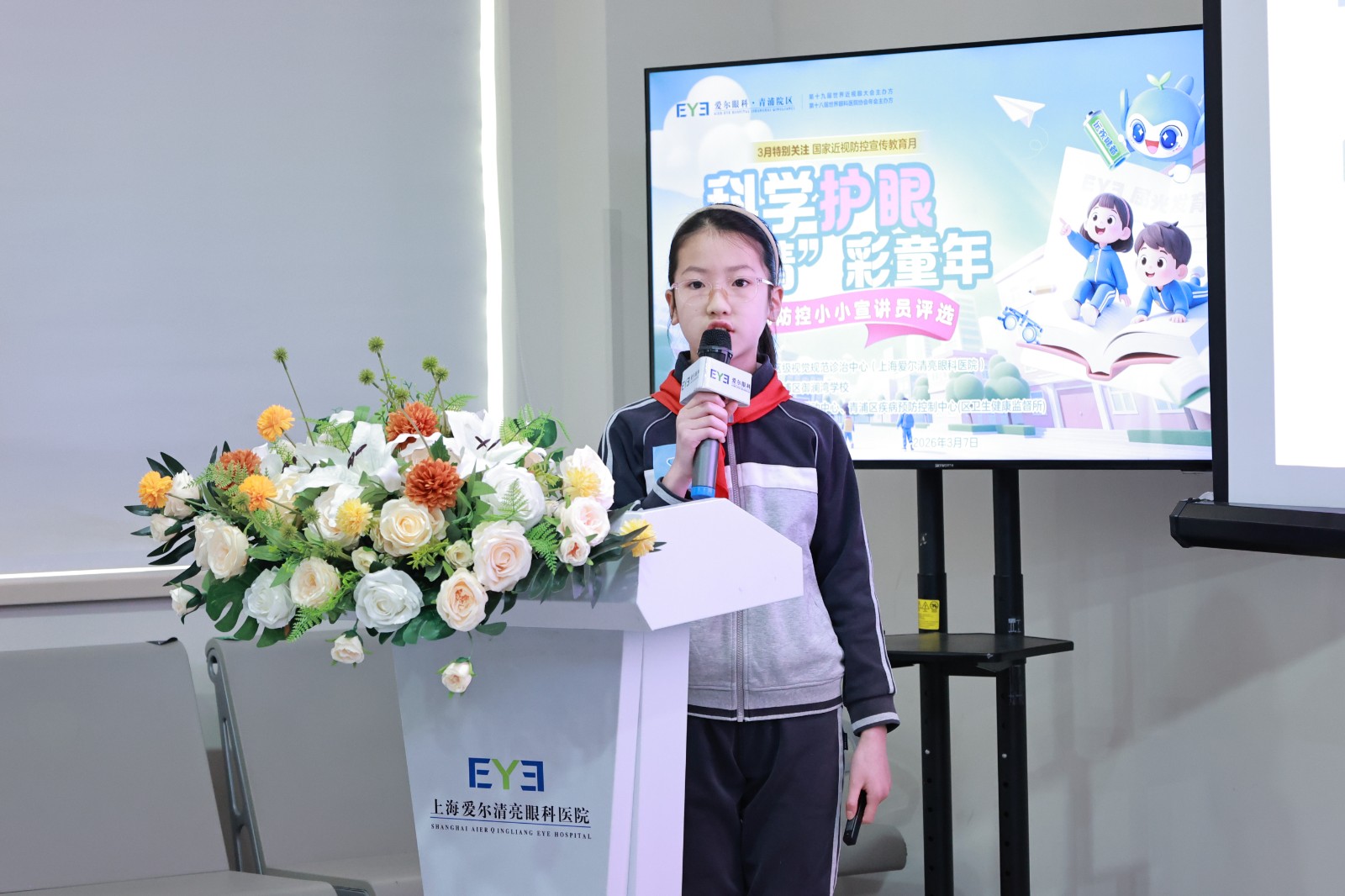 13名经学校选拔的首批优秀 “护眼小使者” 依次登台,以童真视角分享近视防控知识与实用护眼妙招,展现了极强的护眼意识与自信大方的个人风采,赢得了在场评委和家长的一致肯定。