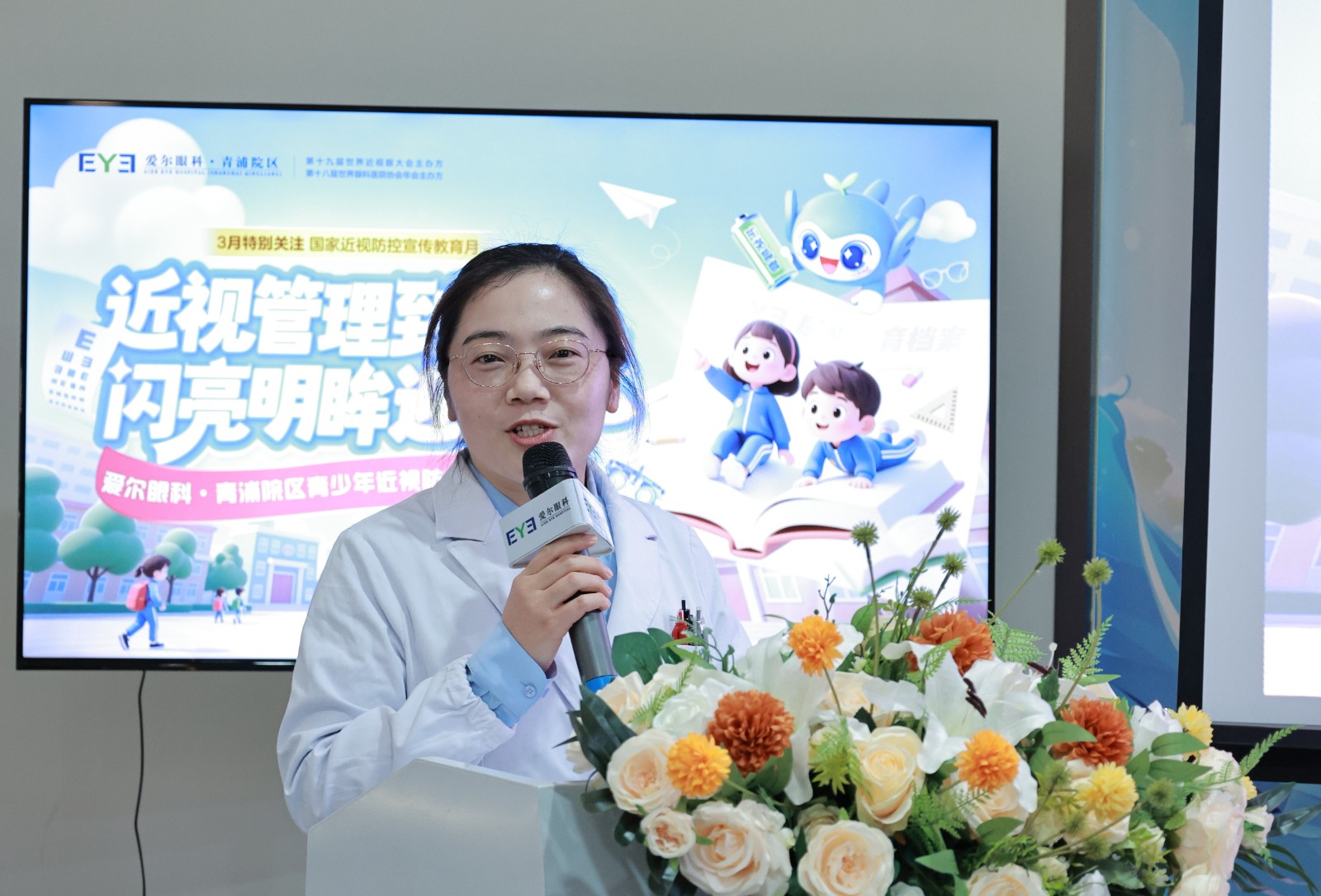 上海爱尔清亮眼科医院视光及小儿眼病科胡晓娟医生带来近视防控开学第一课,用通俗易懂的语言,为家长和学生讲解近视成因、科学矫正与日常护眼要点,现场干货满满、收获热烈掌声。