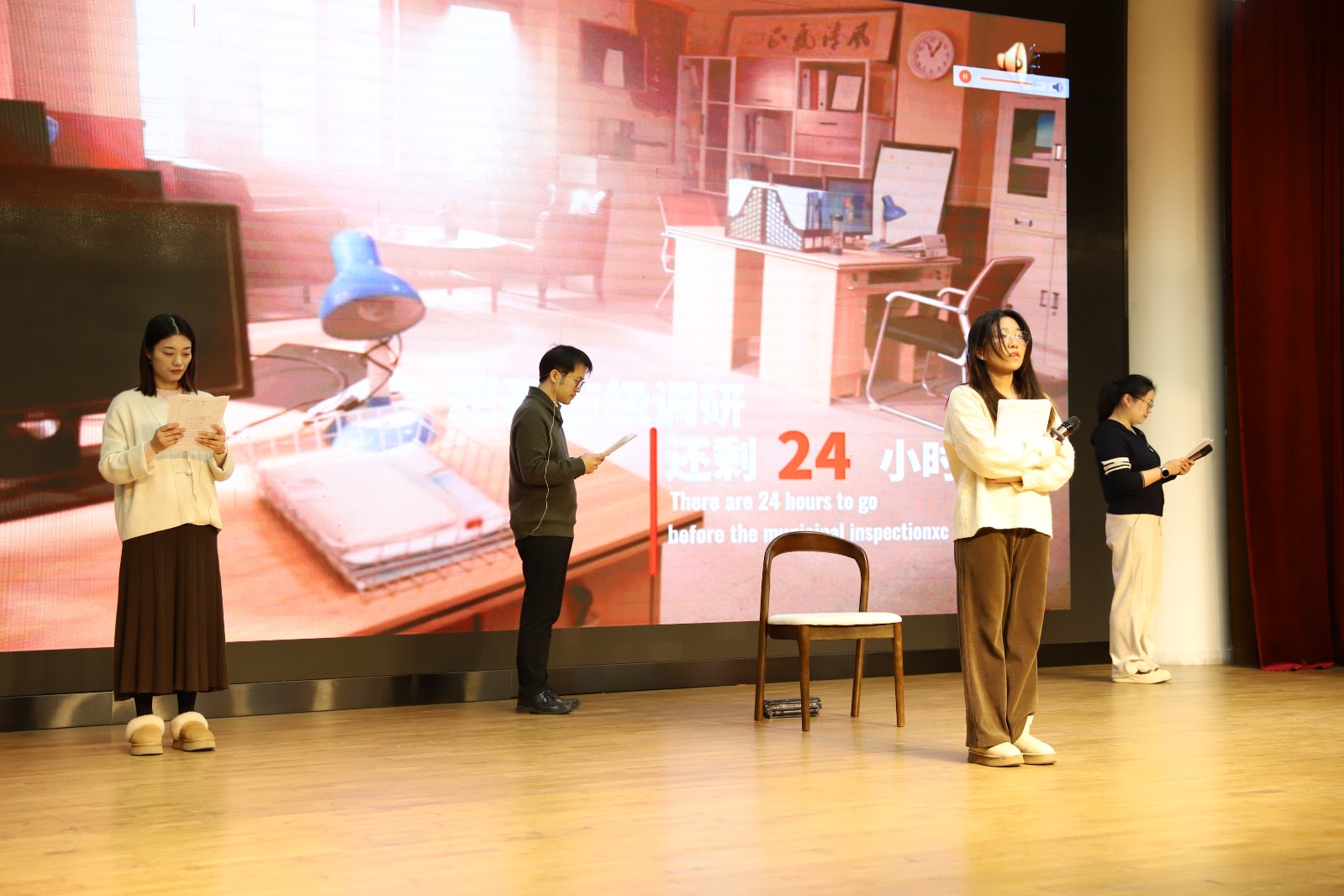 实验小学情景剧《调研“危机”》幽默风趣、寓意深刻,赢得全场阵阵欢笑。