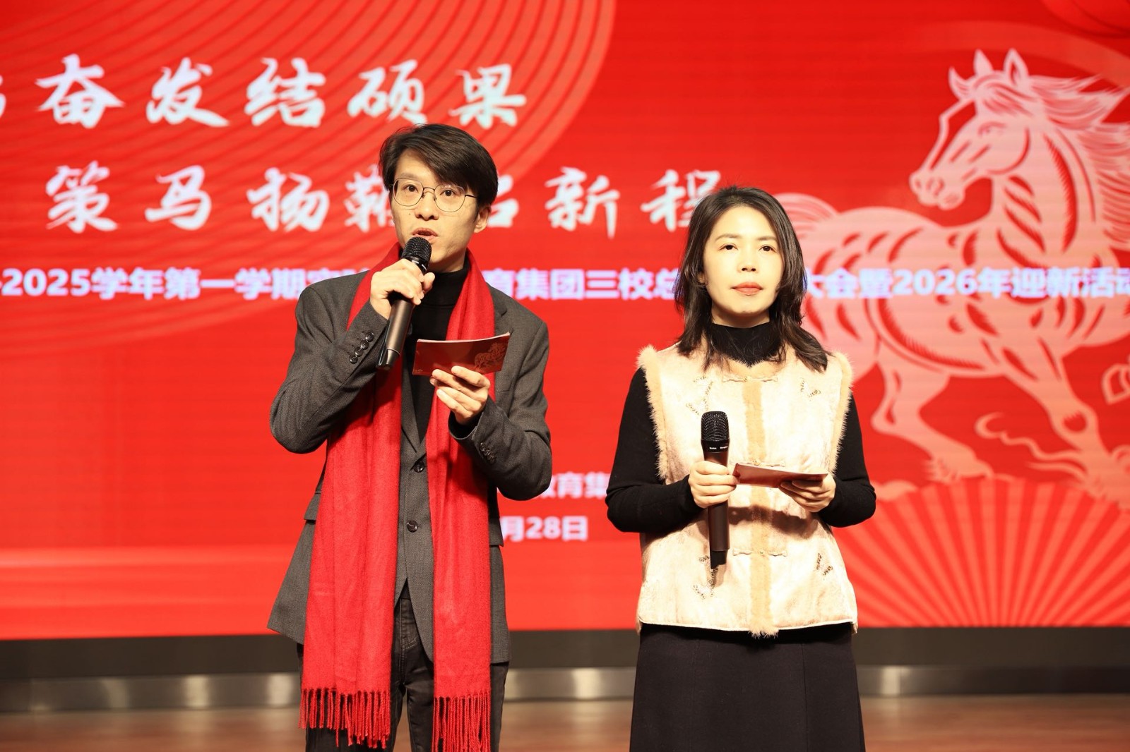 歌声袅袅,寄寓美好期许;步履铿锵,奔赴崭新征程。此次大会既是对实验小学教育集团三校2025学年第一学期工作的全面总结,也是对2026年发展的全新启航。新的一年,集团三校全体教职工将秉持“骏马奔腾志在远”的豪迈与“笃行不怠马加鞭”的干劲,凝心聚力、踔厉奋发,以骐骥凌云之姿、马步生风之态,在教育沃土上继续耕耘,续写实验小学教育集团高质量发展的崭新辉煌。老师们也将带着大会的温暖与激励,度过平安愉快的寒假,以饱满的精神状态迎接新学期的新机遇、新挑战!