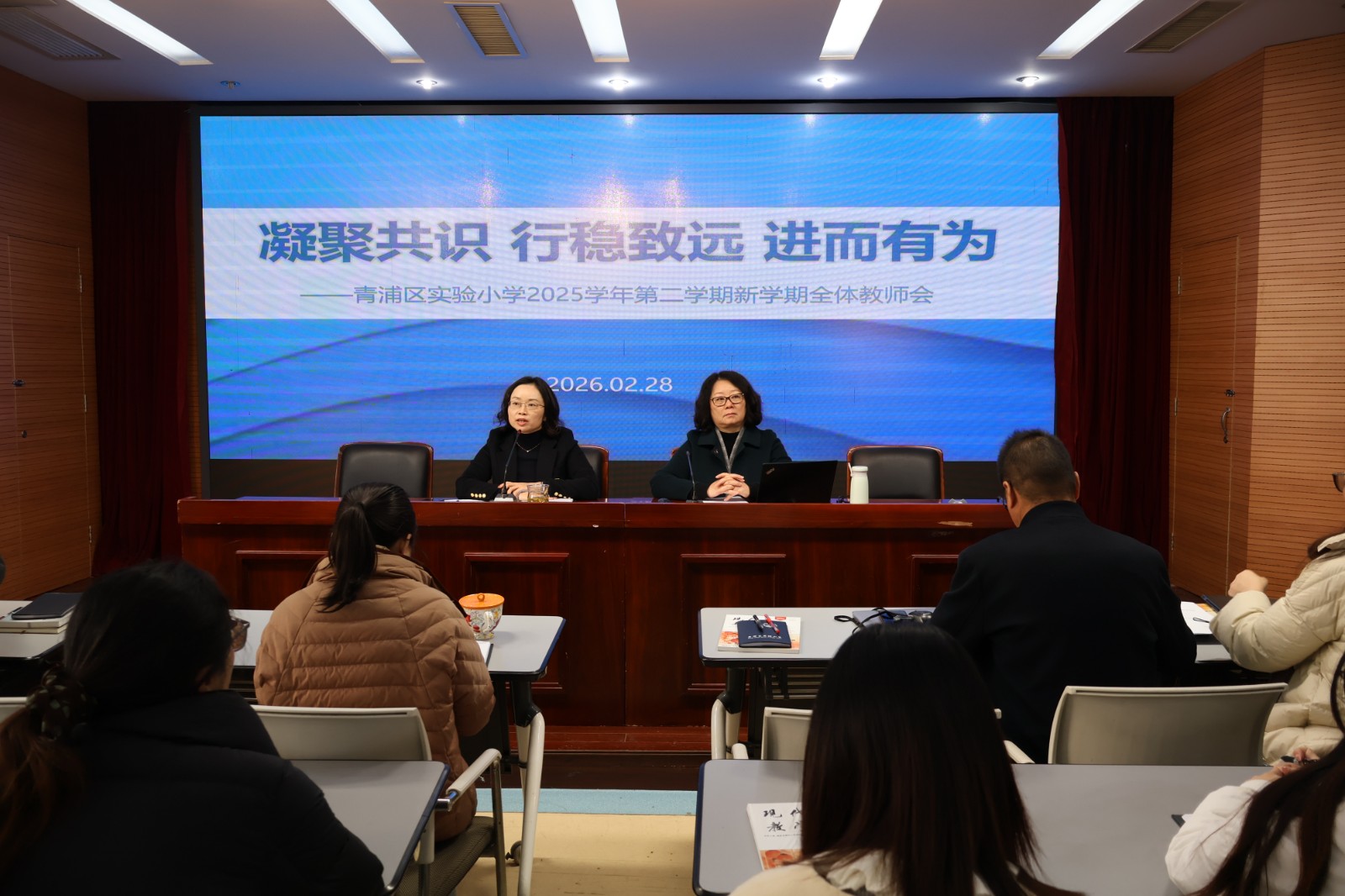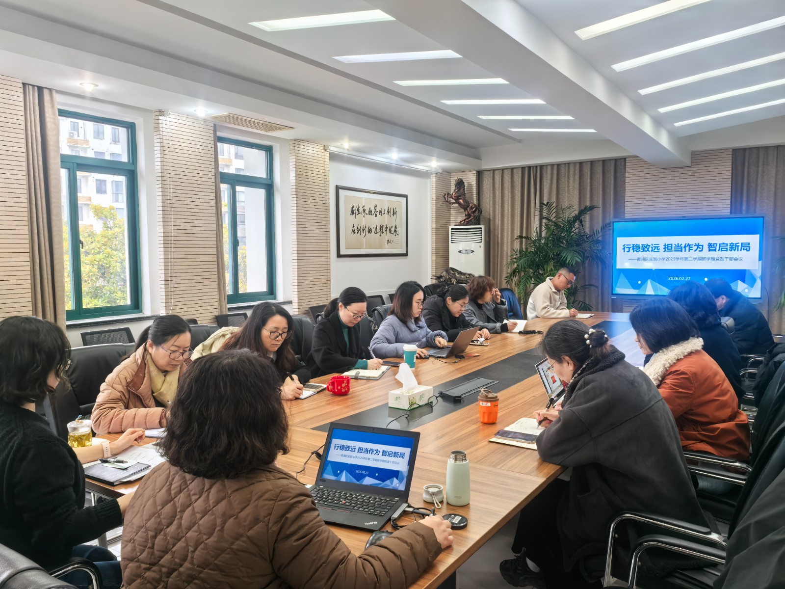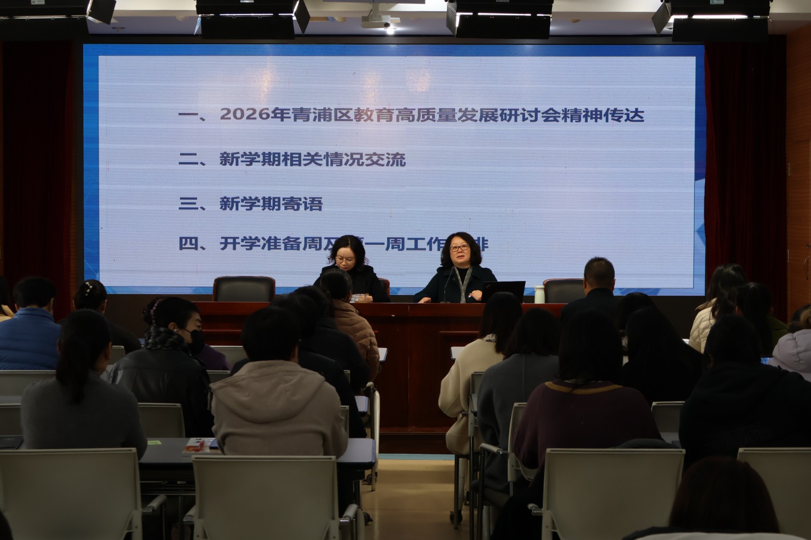 为确保新学期各项工作平稳有序开展,全面落实区域教育高质量发展要求,青浦区实验小学于2026年2月27日召开党政干部会议,2月28日召开全体教师大会,系统部署新学期重点工作。会议分别由徐峰校长、朱莉莉书记主持,全体党政干部及教职工参会。
