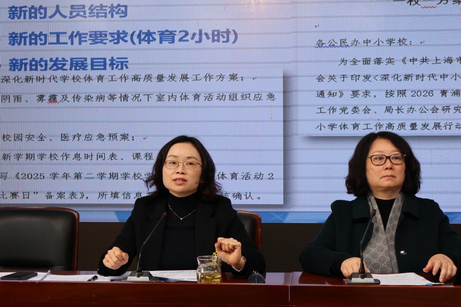 徐峰校长在两次会议上详细传达了2026年青浦区教育高质量发展研讨会精神,重点解读了区委书记王平关于“校长当好领头雁、教师做好引路人、部门当好护航员”的核心要求,以及区教育局关于“无体育不青浦”、学生每天两小时体育活动、双新推进、数字赋能教研训一体化等重点工作部署。会议强调,要主动对接区域“三个聚焦”“三个聚力”战略,立足学校实际,将会议精神转化为“施工图”和“行动力”。