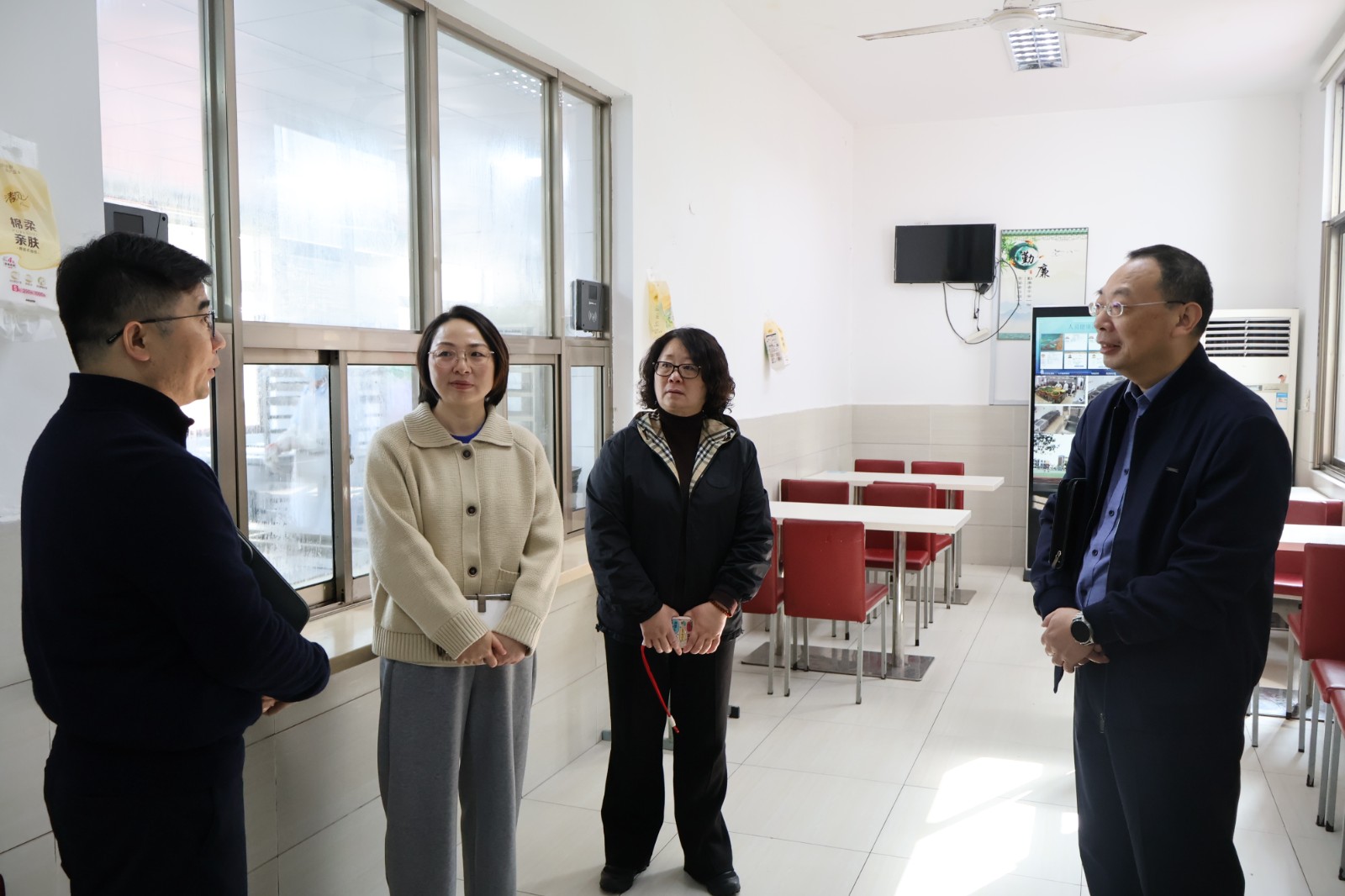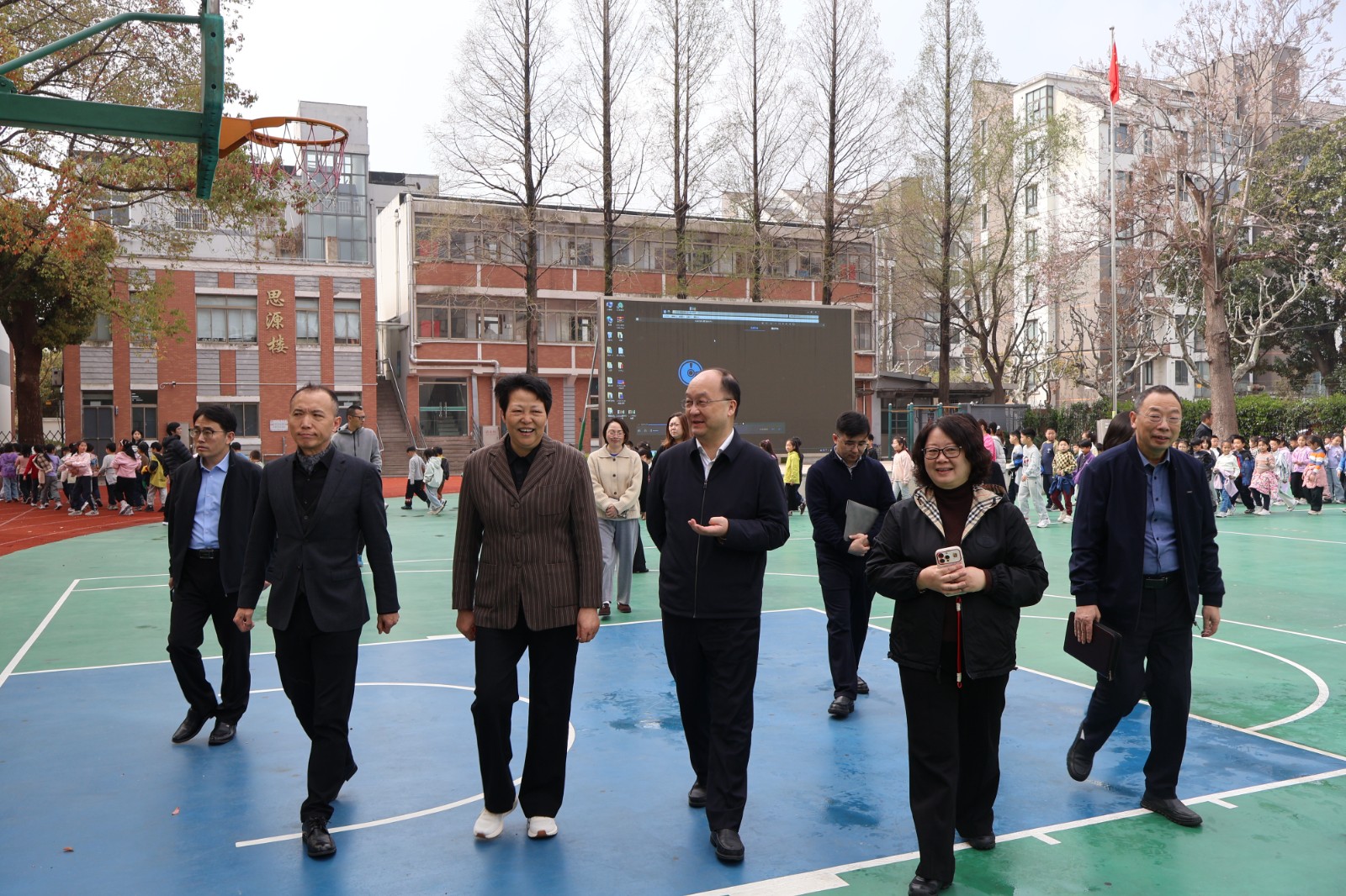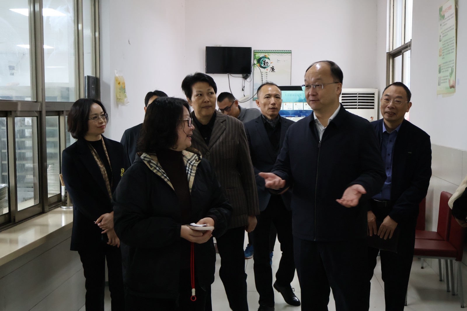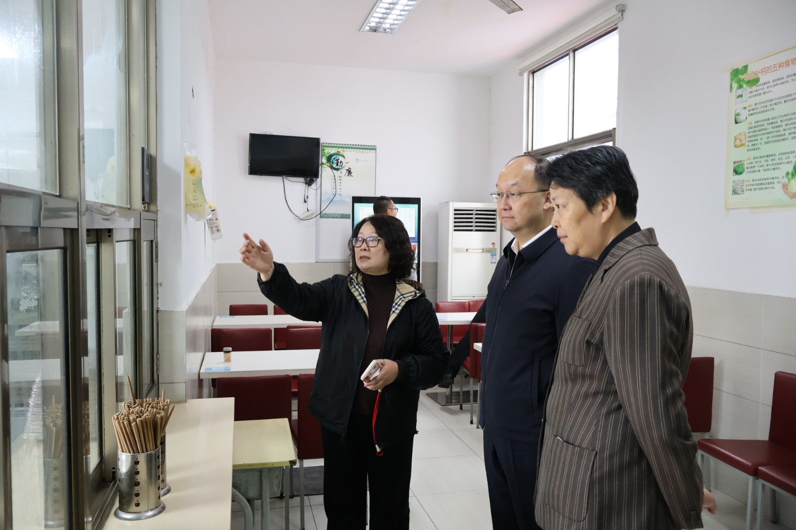 4月1日上午,区人大常务委员会主任程巍、副主任陶夏芳,区人大常委会教科文卫工委主任张宏洲,区教育局副局长朱宏进一行莅临我校,围绕学校食堂食品安全管理、学生校内两小时综合体育活动落实情况开展实地调研与巡查指导。