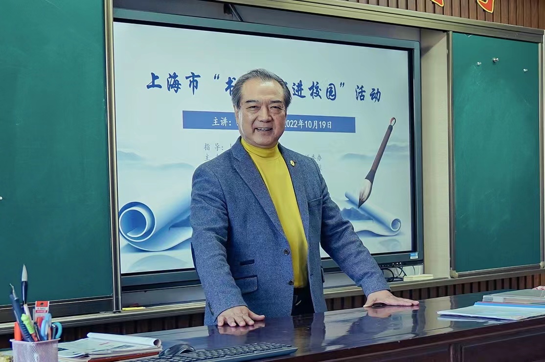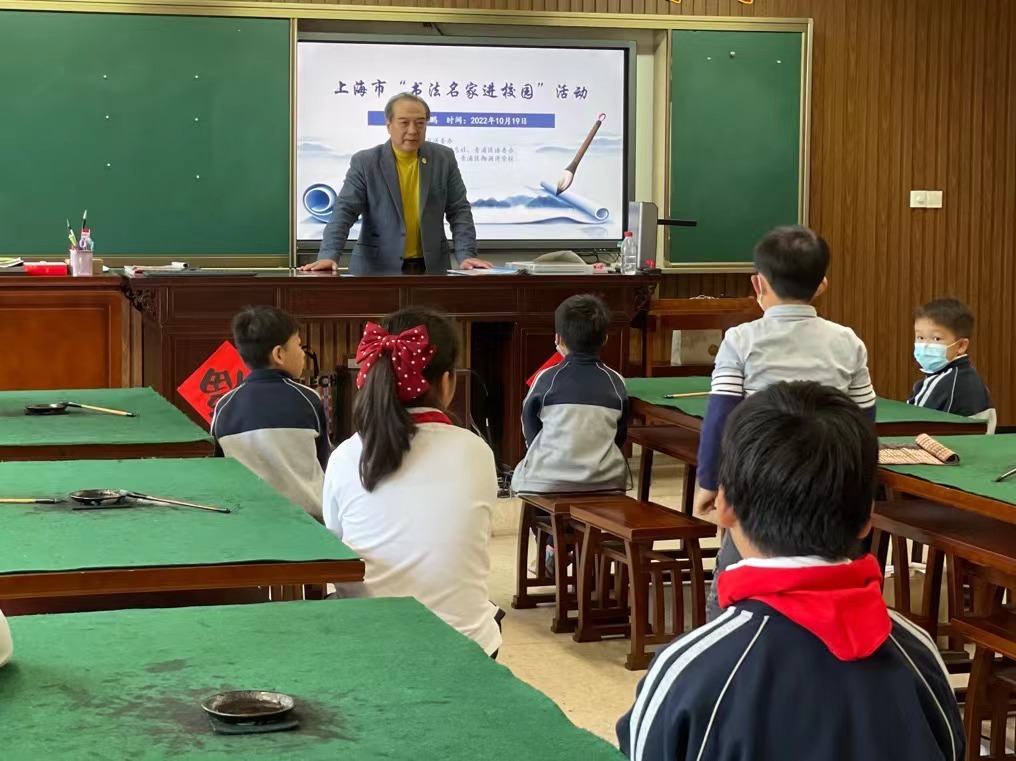 为传承和弘扬中华民族优秀传统文化,促进学生对书法艺术的认识、理解和喜爱,2022年10月19日下午,我校迎来由上海市语委办指导,上海教育报刊总社、青浦区语委办主办,东方教育时报承办的上海市“书法名家进校园”系列活动,上海舒同书法艺术研究会会长、上海市陶行知书画院副院长、上海市青少年校外教育智慧导师、上海市书法名家进校园辅导专家、上海交通大学特聘教授、长江流域文化遗产研究所研究员、上海翰林书画院一级美术师陈鹏老师,为学校书法社团学生进行书法讲座与指导。