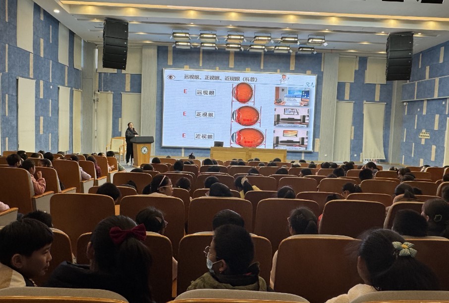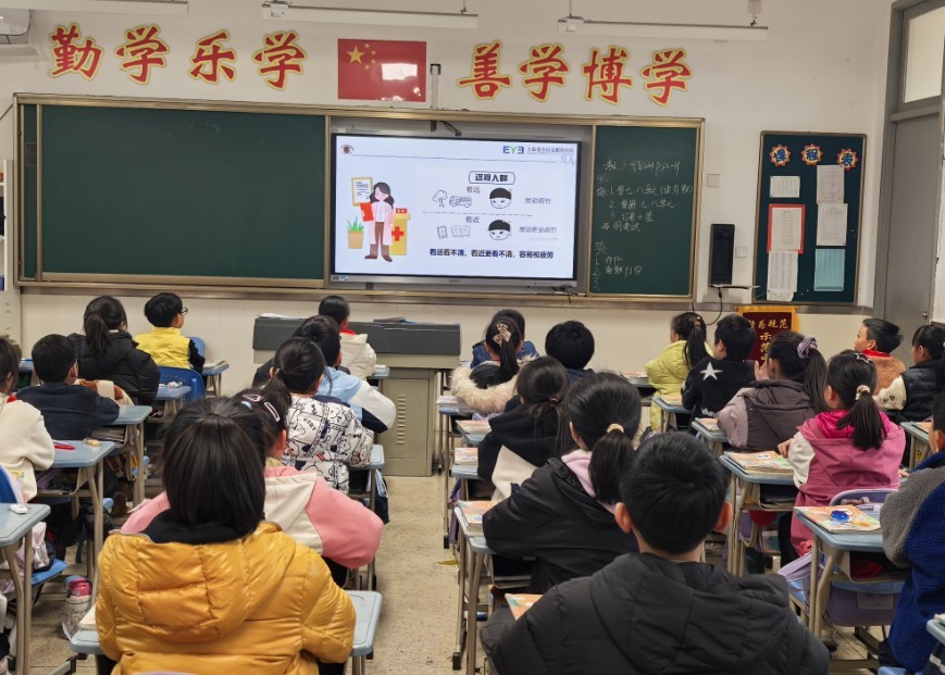 胡医生围绕“眼睛基本结构、近视发生原理、如何预防近视以及近视发生了怎么办”几个方面进行了授课讲解。孩子们听得格外认真,明白了近视不仅仅是视力下降,看不清黑板这么简单。近视还会影响他们的学习效率,在体育运动、课外活动等方面也可能会受到限制。而且,随着近视度数的加深,可能引发一系列眼部并发症,如视网膜脱离、黄斑病变等,对眼睛的健康构成严重威胁。