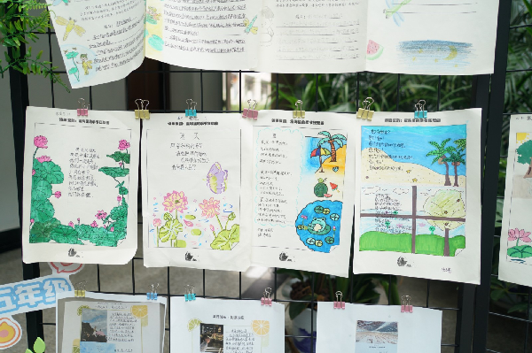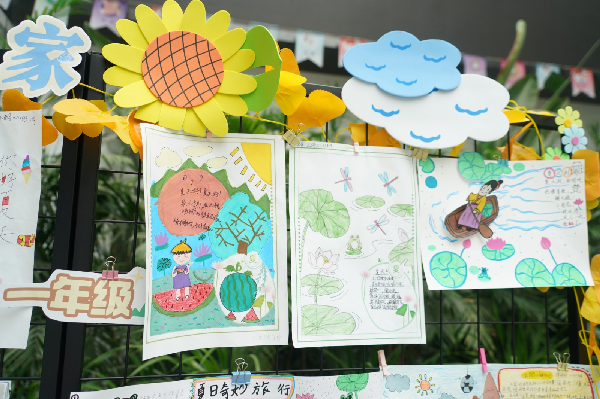 诗中有画,画中有夏。孩子们将诗与画巧妙结合,制作成创意手账或小诗集。将古诗的意境与夏日的景致巧妙融合,或以诗配画,或以画解诗,在诗情画意中感悟着传统文化的隽永与夏日的灵动。