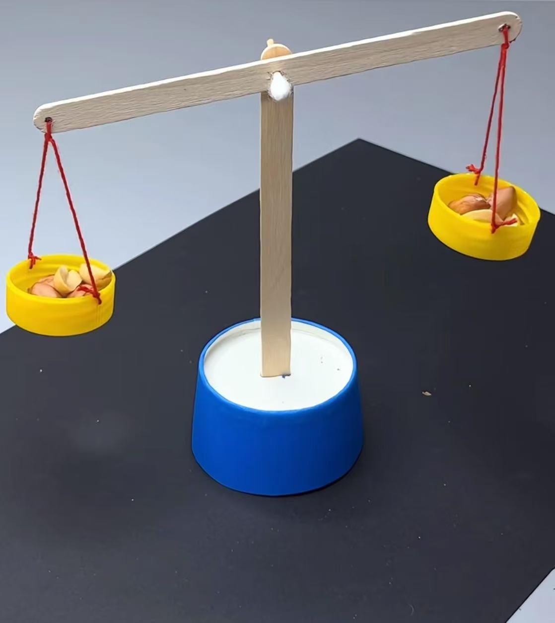 解锁任务:用衣架、纸杯、筷子做一个“简易天平秤”,能比出苹果和橘子哪个更重!优秀作品还能全校展示哦!