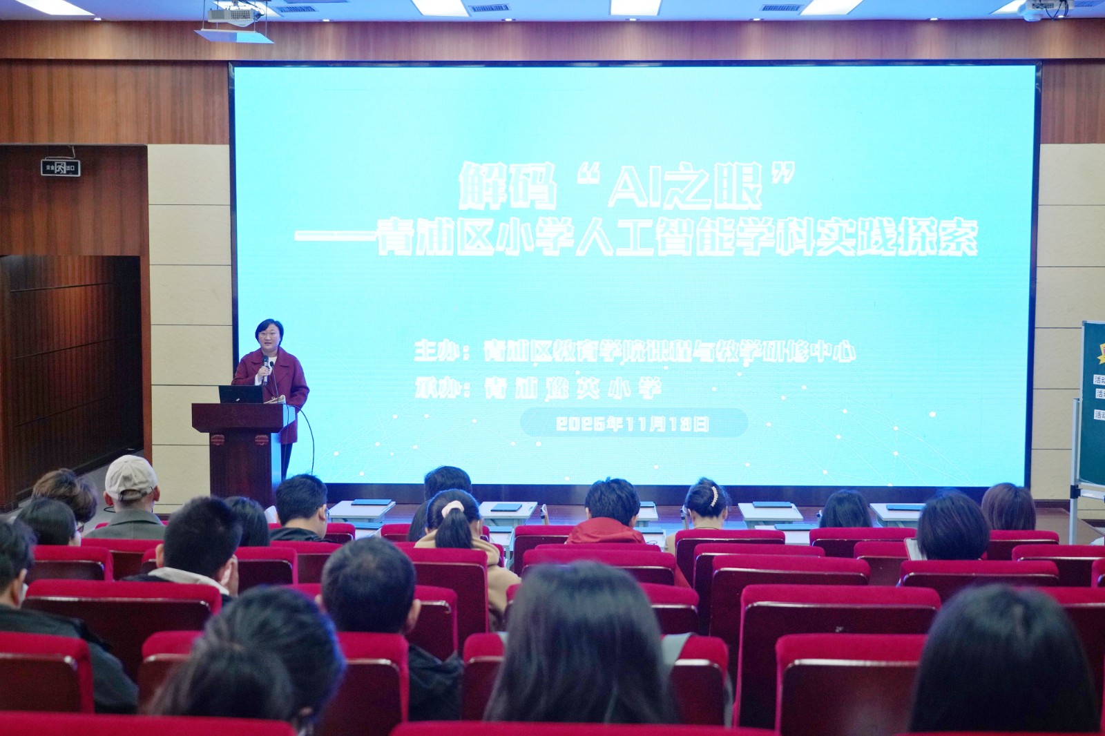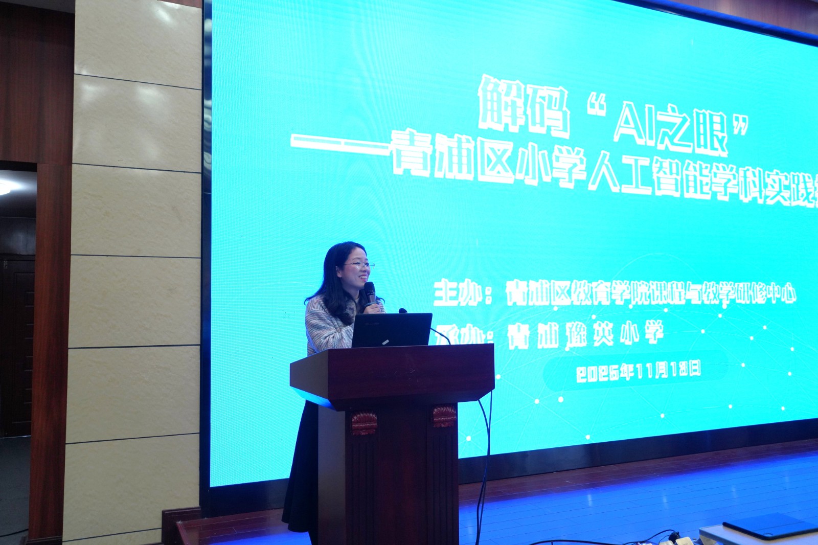 2025年11月13日上午,主题为“解码‘AI之眼’——青浦区小学人工智能学科实践探索”专项活动在青浦豫英小学顺利开展。本次活动由青浦区小学信息科技学科教研员李小维老师主持,参与活动的有上海市教育学院小学信息科技教研员费宗翔老师,徐汇区、静安区、松江区、嘉定区教育学院的童琳、张建栋、张瑛、严玮玮等教研员老师,以及各区县人工智能学科教师代表,共同聚焦小学人工智能教学的实践与创新。