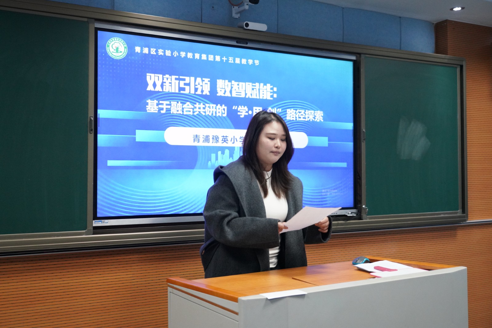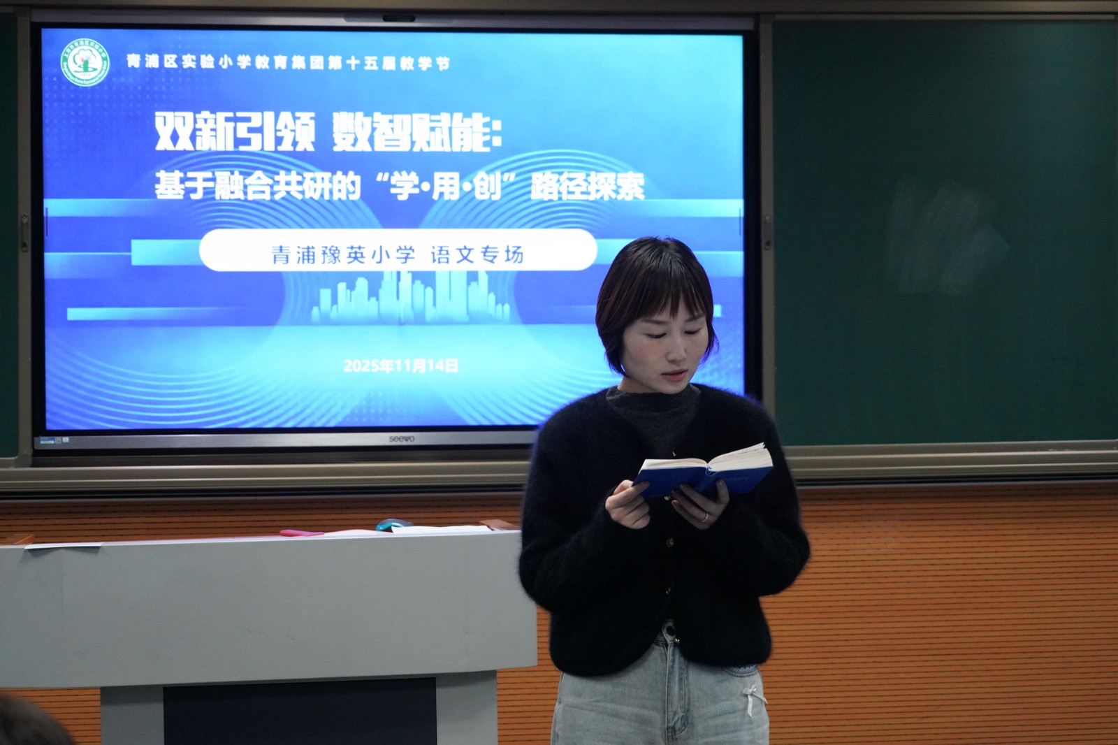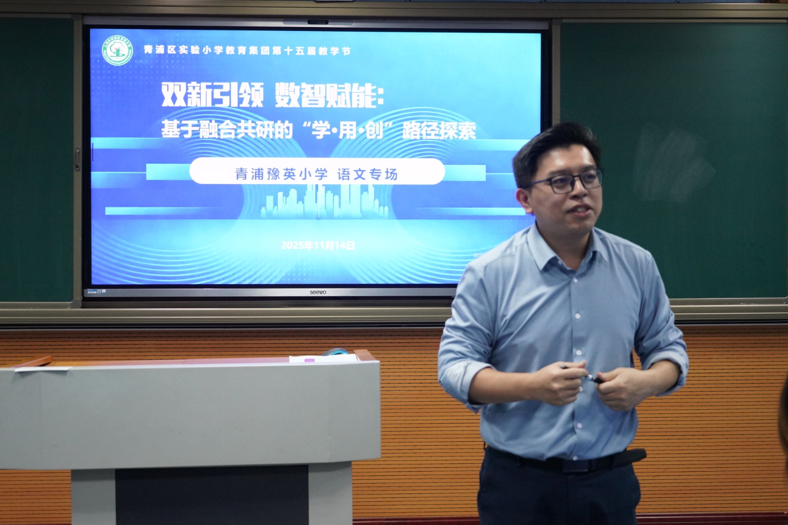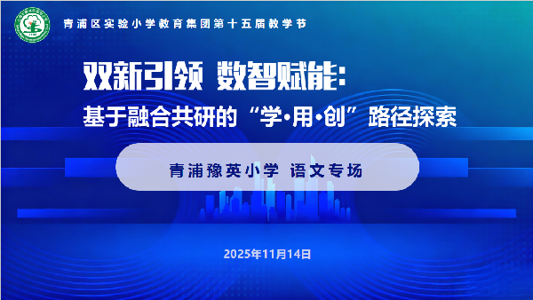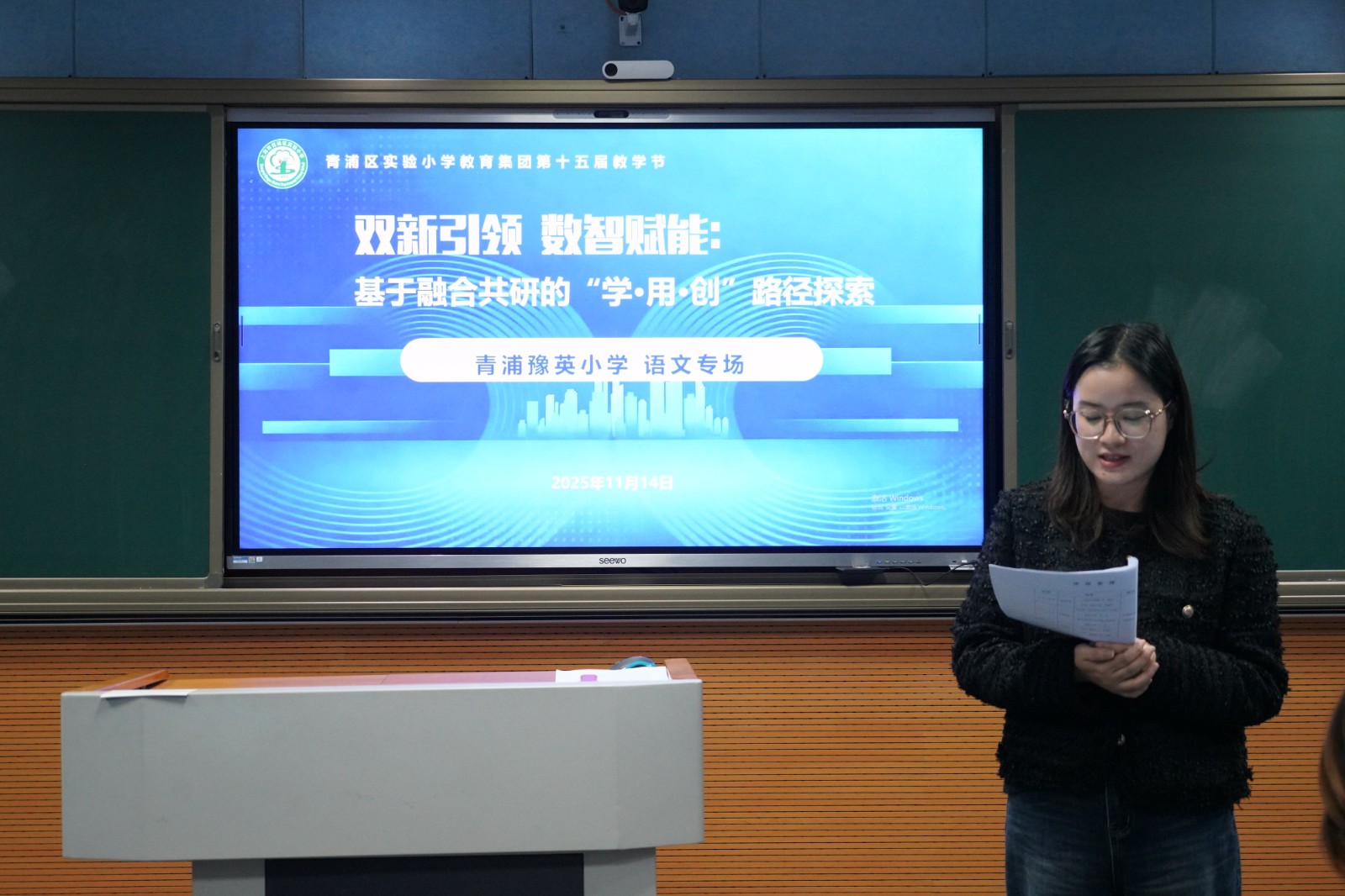 2025年11月14日下午,青浦区实验小学教育集团第十五届教学研究节语文学科课堂教学实践研讨活动于上海市青浦豫英小学顺利举行。本次活动以“‘双新’引领,数智赋能:基于融合共研的‘学・用・创’路径探索”为主题,通过课堂展示、主题交流与主题研讨,深度探索数字化转型背景下语文课堂的变革与创新。豫英小学全体语文教师及集团各校语文教师代表齐聚一堂,共同参与本次活动。