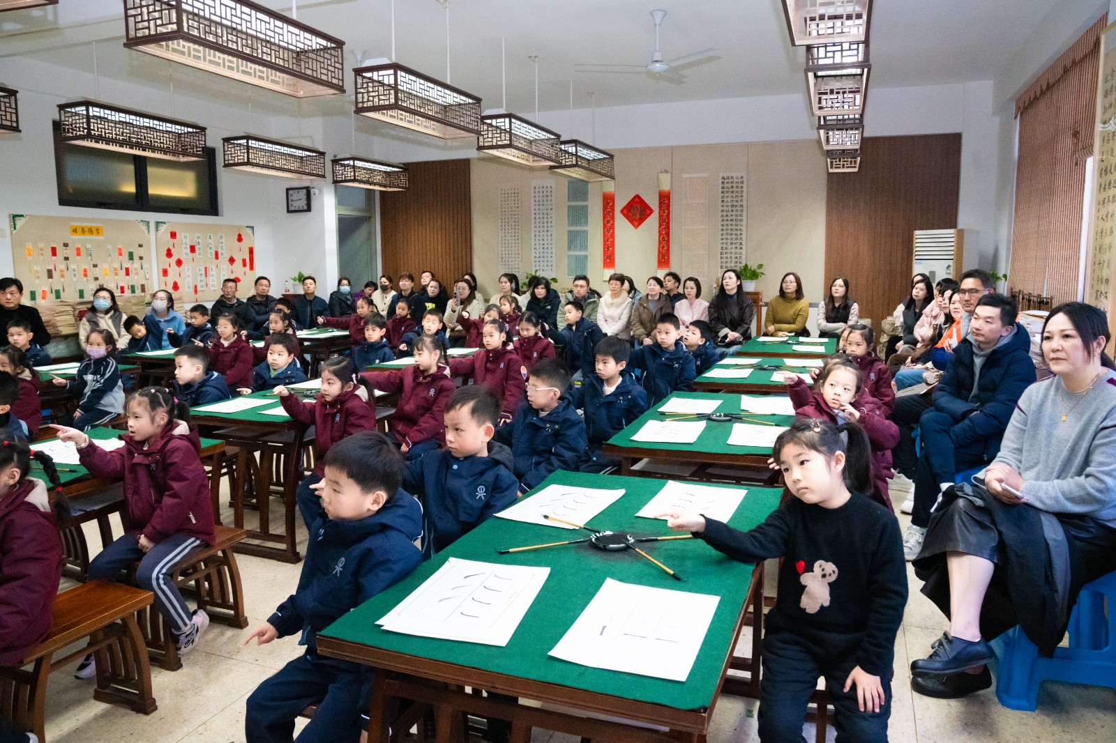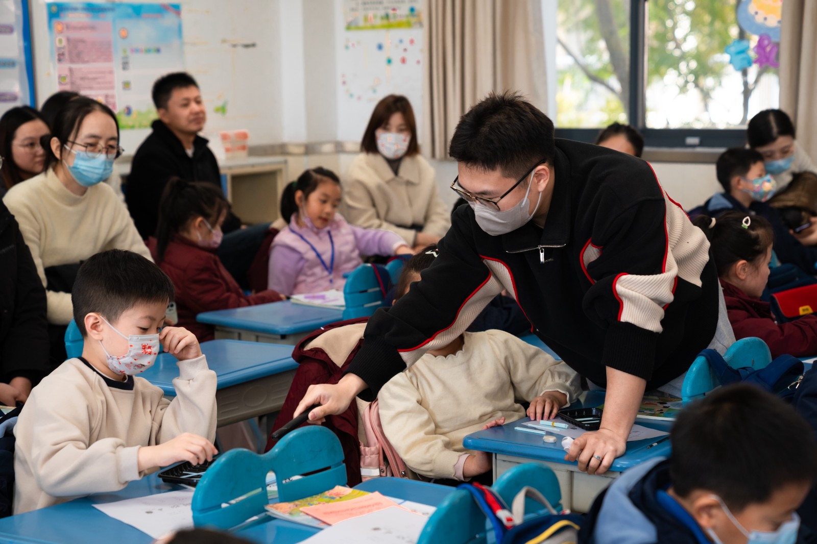 在课堂展示环节,家长们走进孩子所在班级,沉浸式观摩语文、外语、数学、体育与健康、小学艺术(唱游·音乐)、小学艺术(造型·美术)、书法、综合实践活动等多学科教学过程。执教教师紧扣“双新”背景下的教学要求,将核心素养培养融入课堂,展现了生动有趣、形式多样的教学方式,让家长直观感受到孩子在校园的学习状态,更清晰理解了现代课堂的教学目标与实施路径,进一步了解学校的教学特色与育人理念。