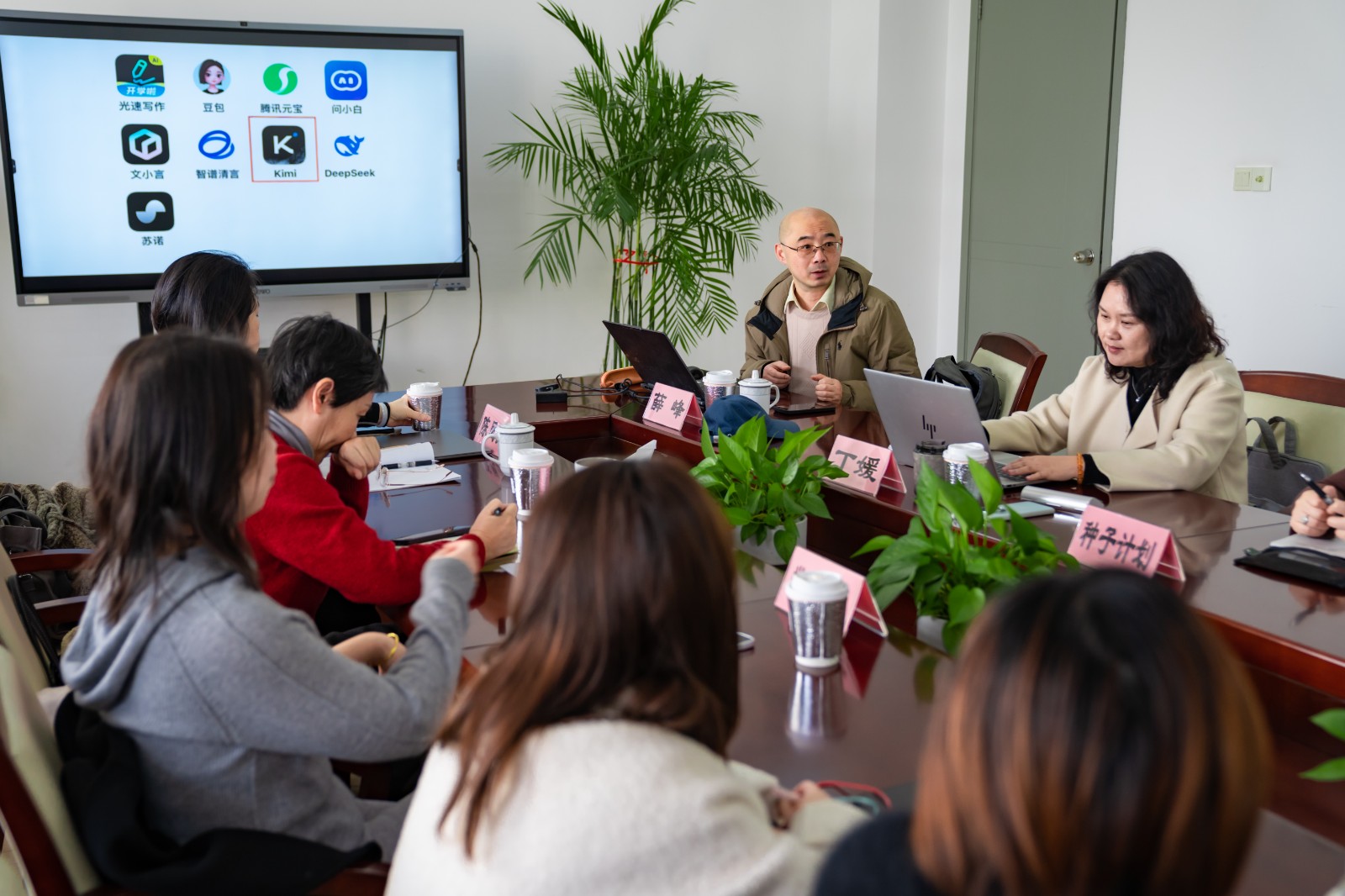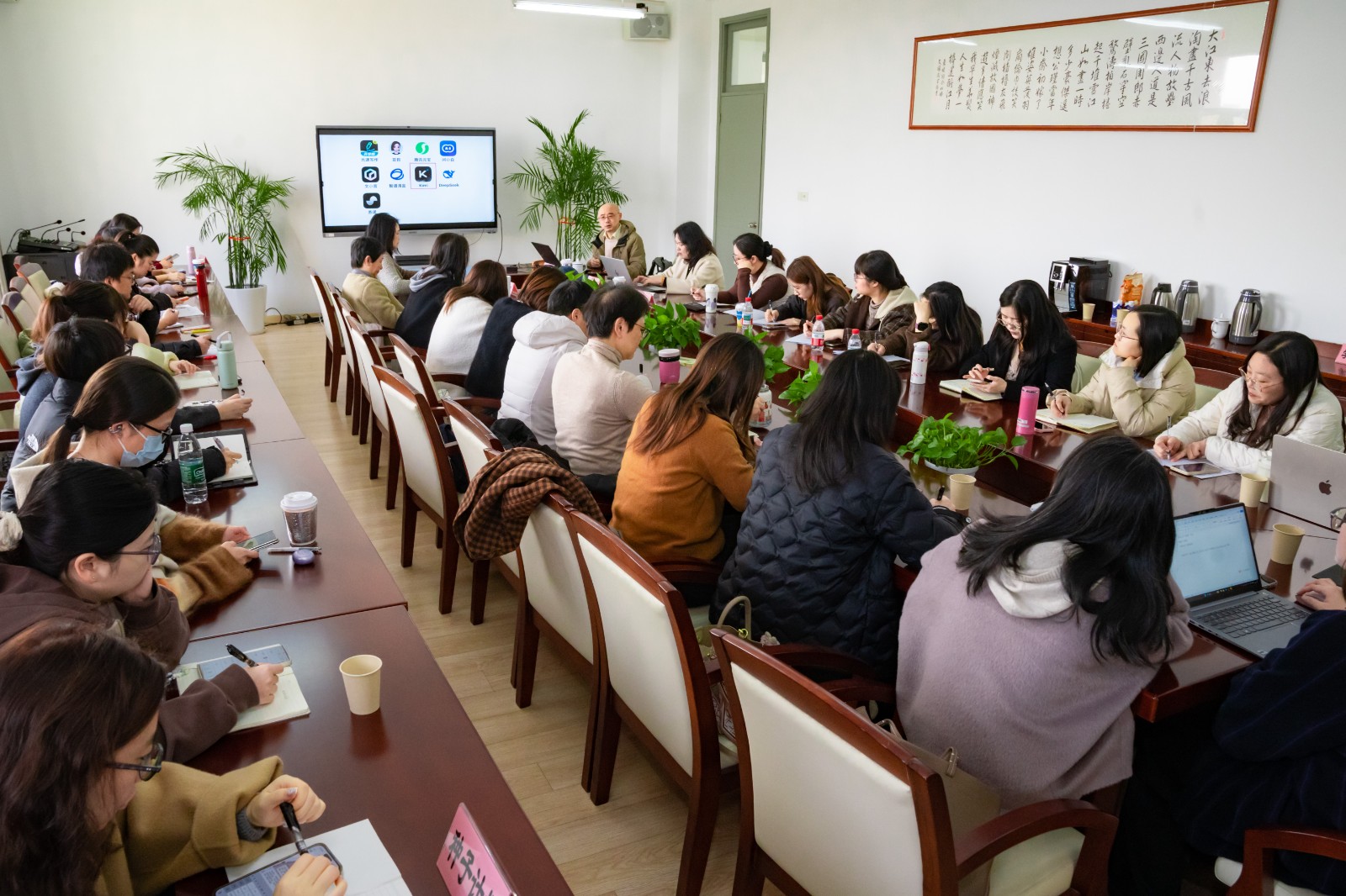 2025年11月27日上午,一场专注于探讨生成性人工智能(AI)在语文教学中应用的讲座在御澜湾学校敬业楼三楼会议室举行。本次活动由上海市教师教育学院(上海市教育委员会教学研究室)小学语文教研员薛峰老师主讲。青浦区教育学院课程与教学研修中心小学语文教研员陈凤英、丁媛老师,青浦区小学语文教师学科基地核心组成员,以及青浦区沈红丽“种子计划”团队成员和沈欢欢“种子计划”团队成员,共同参与了此次专题讲座。