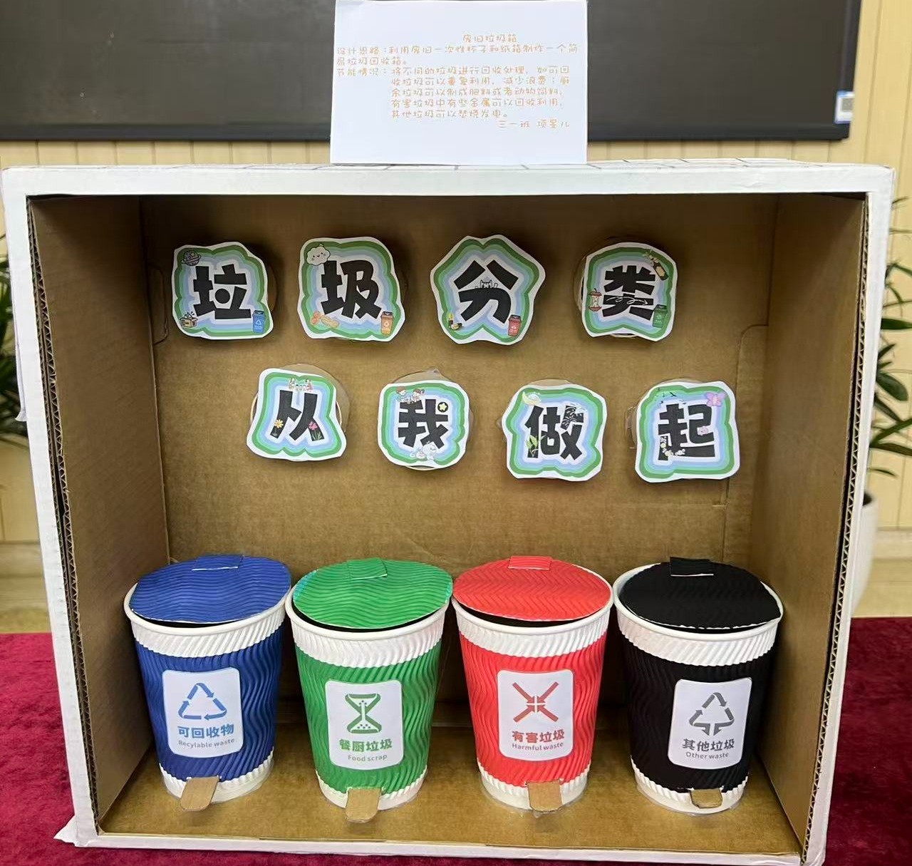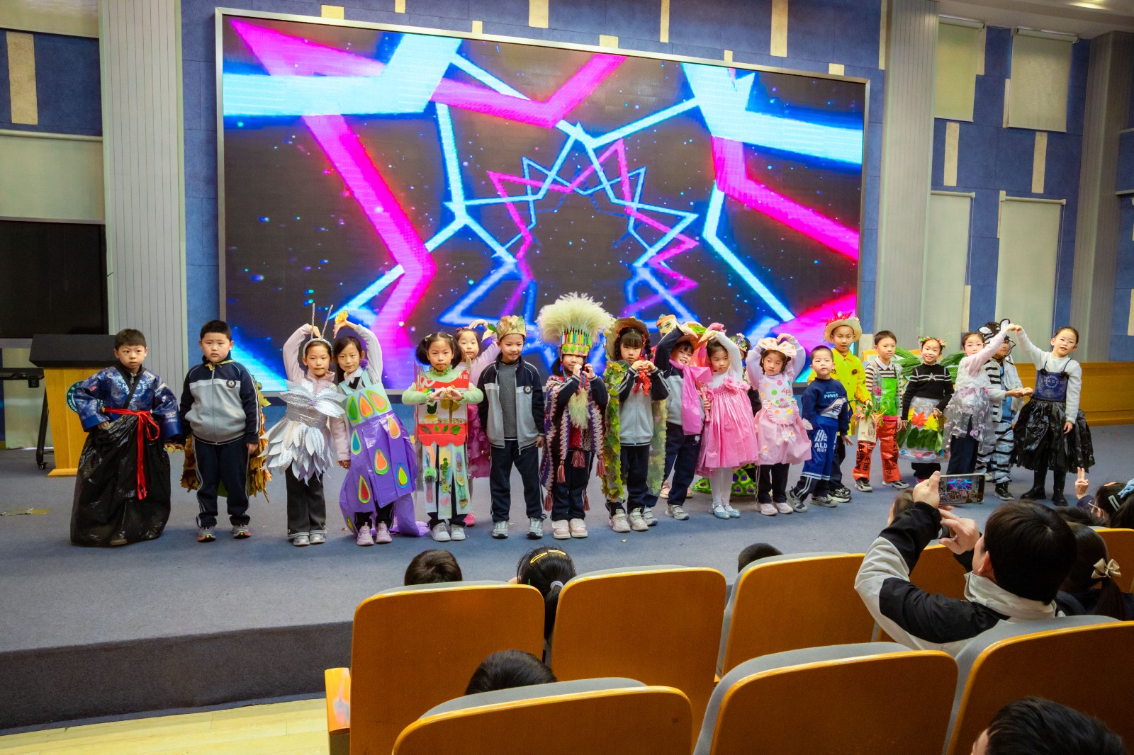 一、二年级的同学们与家长共同利用废旧材料,设计制作“创意服装”;三至五年级的同学们独立或合作完成“创意小制作”,体现环保理念与实用价值。同学们在动手实践中学会观察、思考与创造。