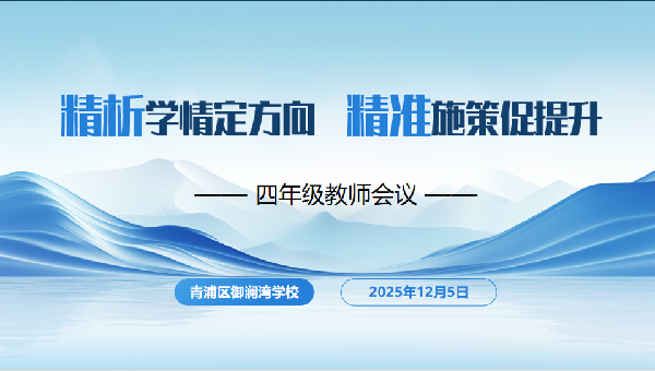 为精准剖析四年级学业质量现状,明确下一阶段教学方向与目标,2025年12月5日,御澜湾学校召开了主题为“精析学情定方向 精准施策促提升”的四年级教师会议。校长顾文荣、党支部副书记沈红丽、各学科教学分管领导及四年级各学科教师共同参加。