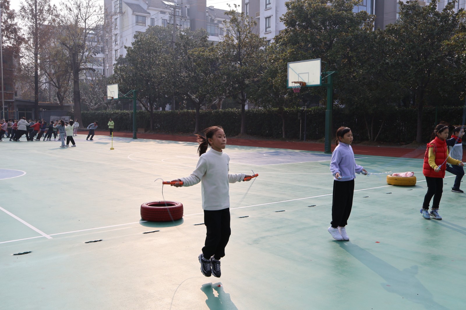 本次趣味运动会共设有跳短绳,车轮滚滚,拔河三大团体项目。每个项目既充满趣味运动性也考验孩子们的团队协作能力。
