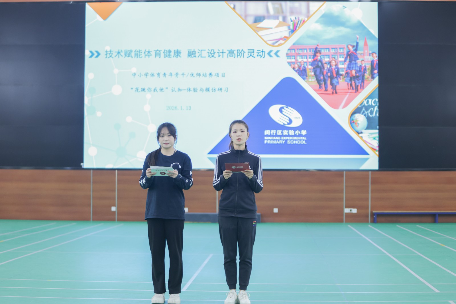 为深化体育教育教学改革,赋能青年体育教师专业成长,2026年1月13日,中小学体育青年骨干/优师培养项目“花样跳绳你我他”认知・体验与模仿研习活动在闵行区实验小学(畹町校区)圆满落幕。青浦区刘萍“拔尖计划”小学体育团队有幸受邀参与此次交流研讨活动。本次活动以“技术赋能体育健康 融汇设计高阶灵动”为主题,汇聚了奉贤区卓越教师培养工程名优项目成员、闵行区优秀青年教师研修班学员、“种子计划”陆晶团队、文来初中“星育计划”学员、闵行区实验小学体育教研组代表等多支跨区域优师队伍,通过多元形式的深度研习,为体育教育工作者搭建了优质的学习交流与经验共享平台。
