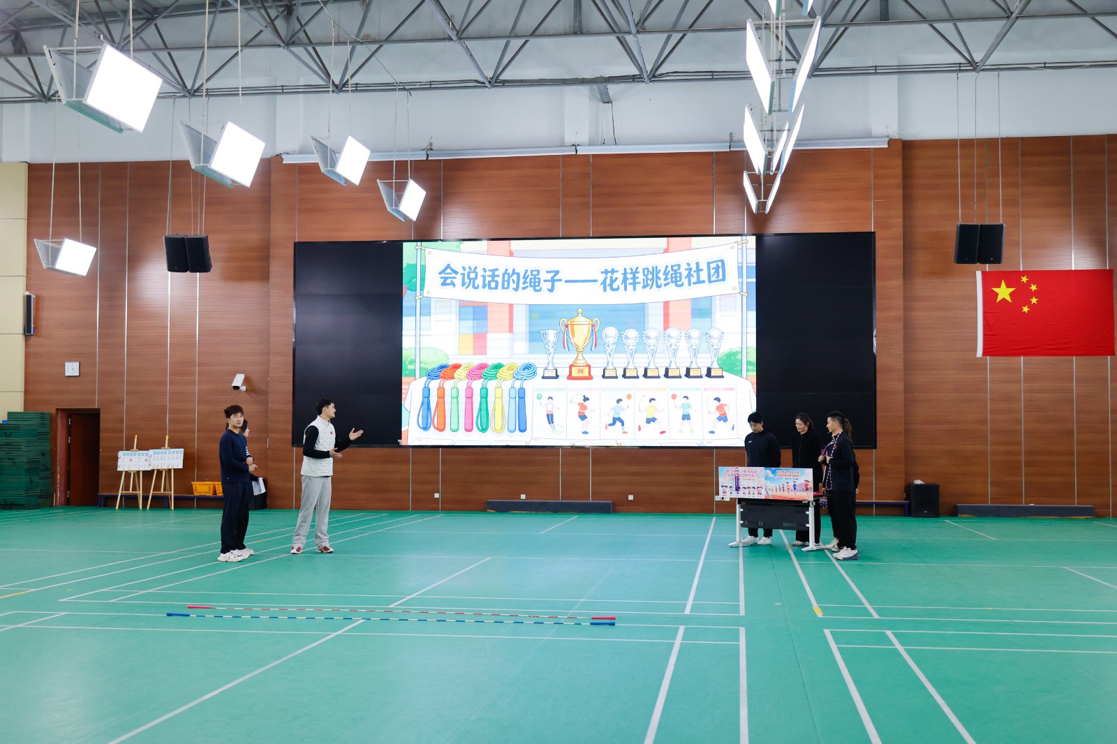 专题分享阶段,情景剧《花跳知多少——会说话的“绳”奇世界》精彩上演。教师们通过五幕生动演绎,结合科普视频与现场展示,系统介绍了花样跳绳的分类、规则、育人价值及欣赏要点,将专业知识融入趣味情境,为老师们提供了优秀的教学示范。