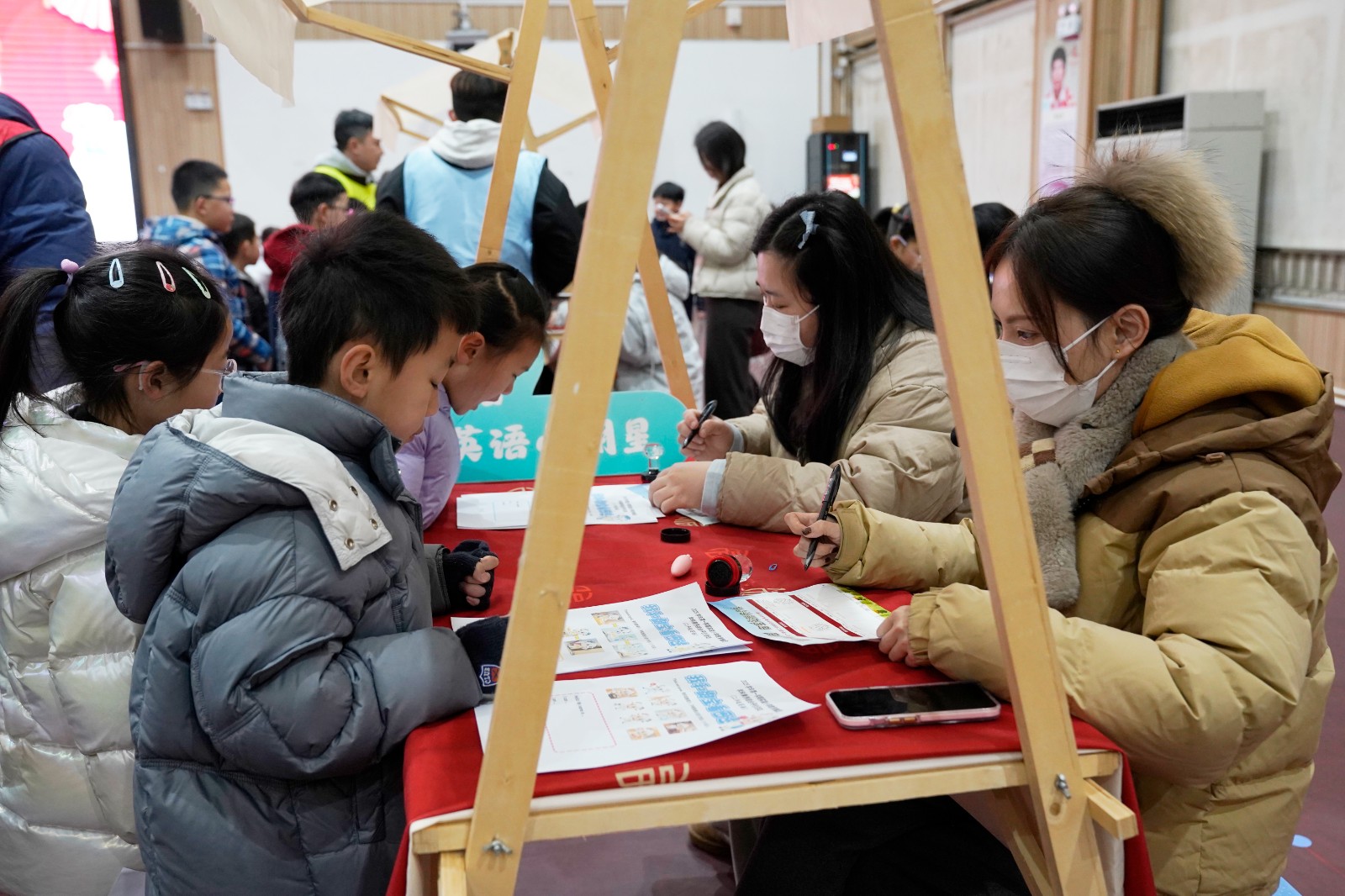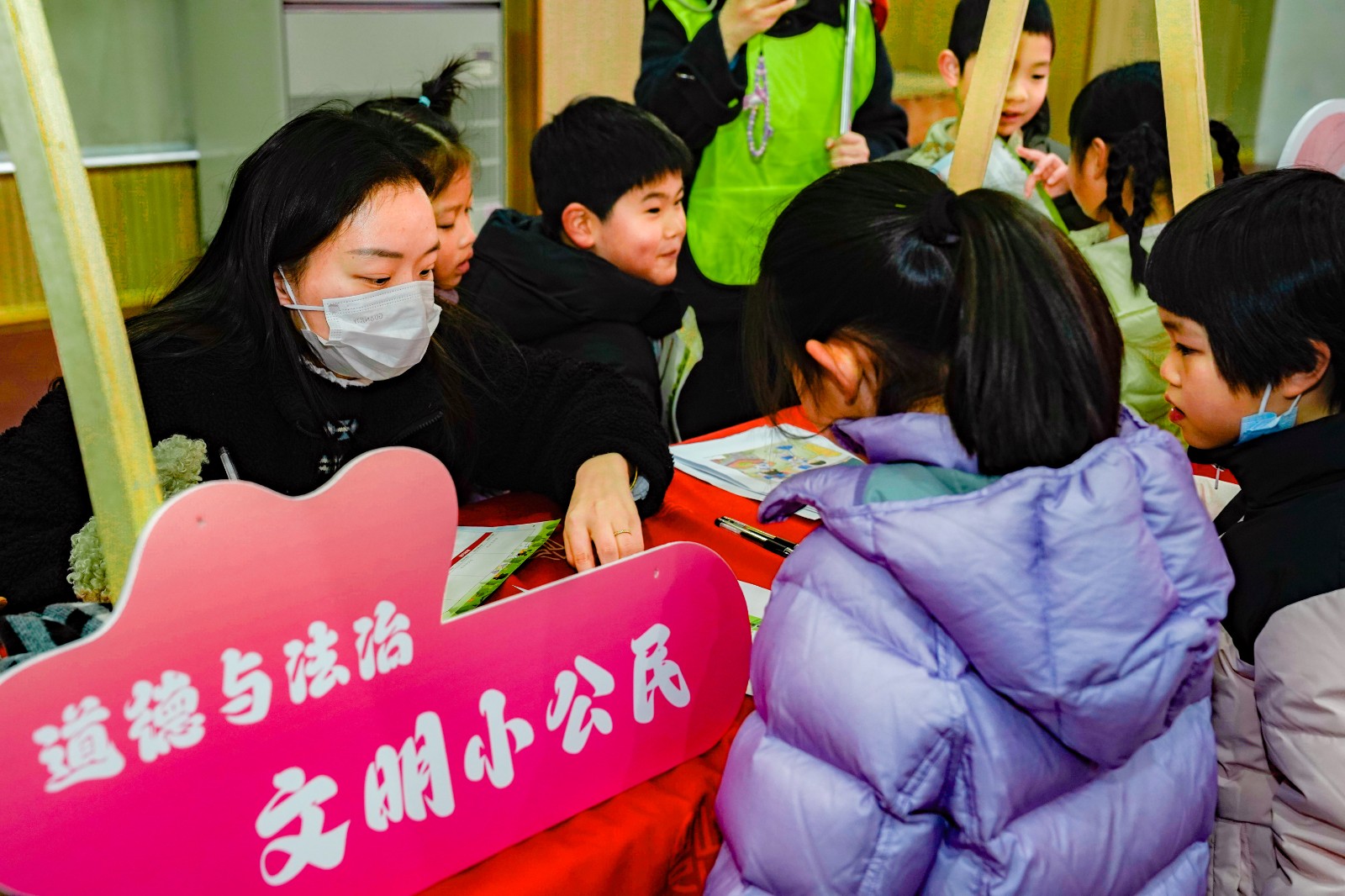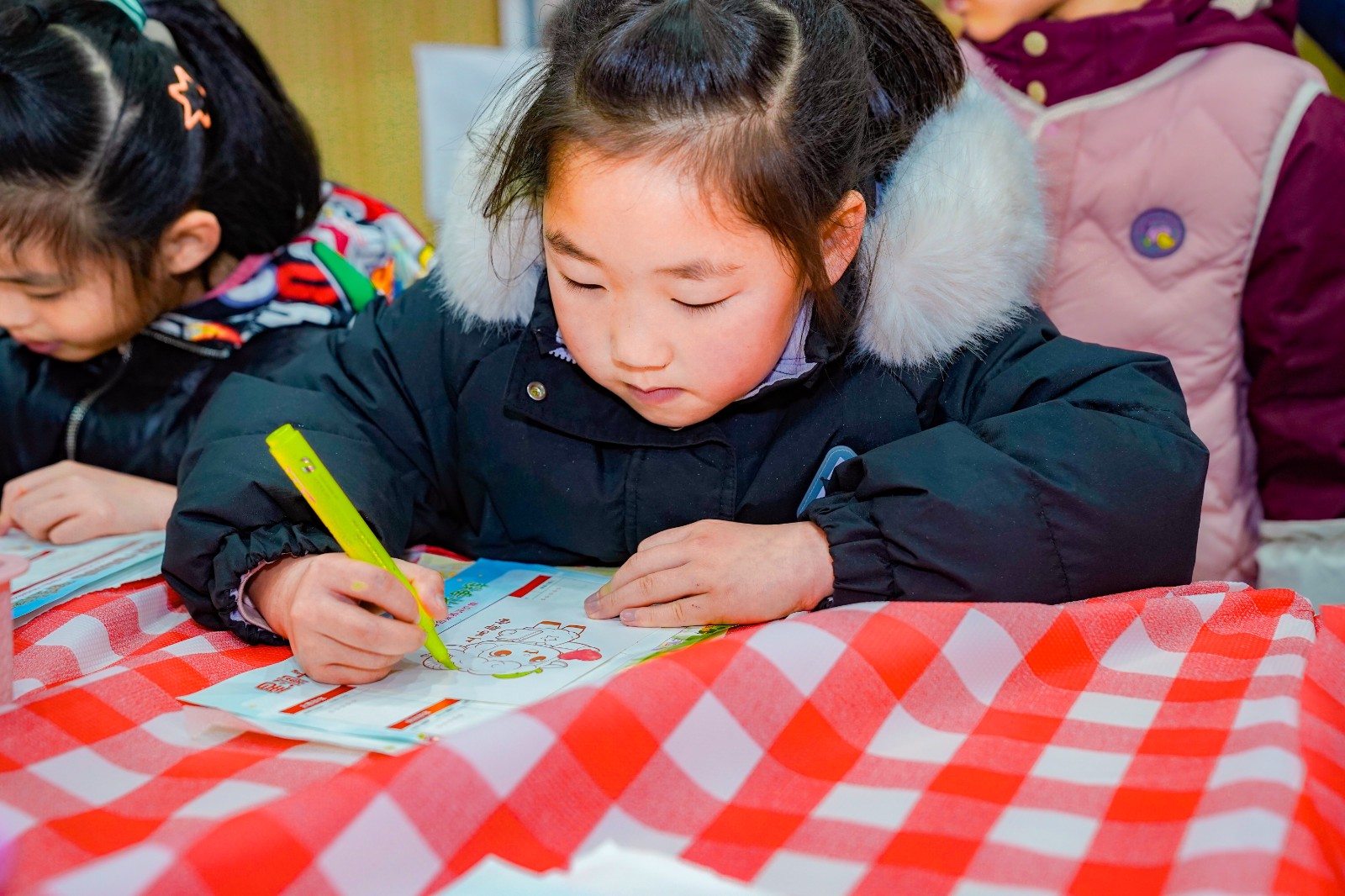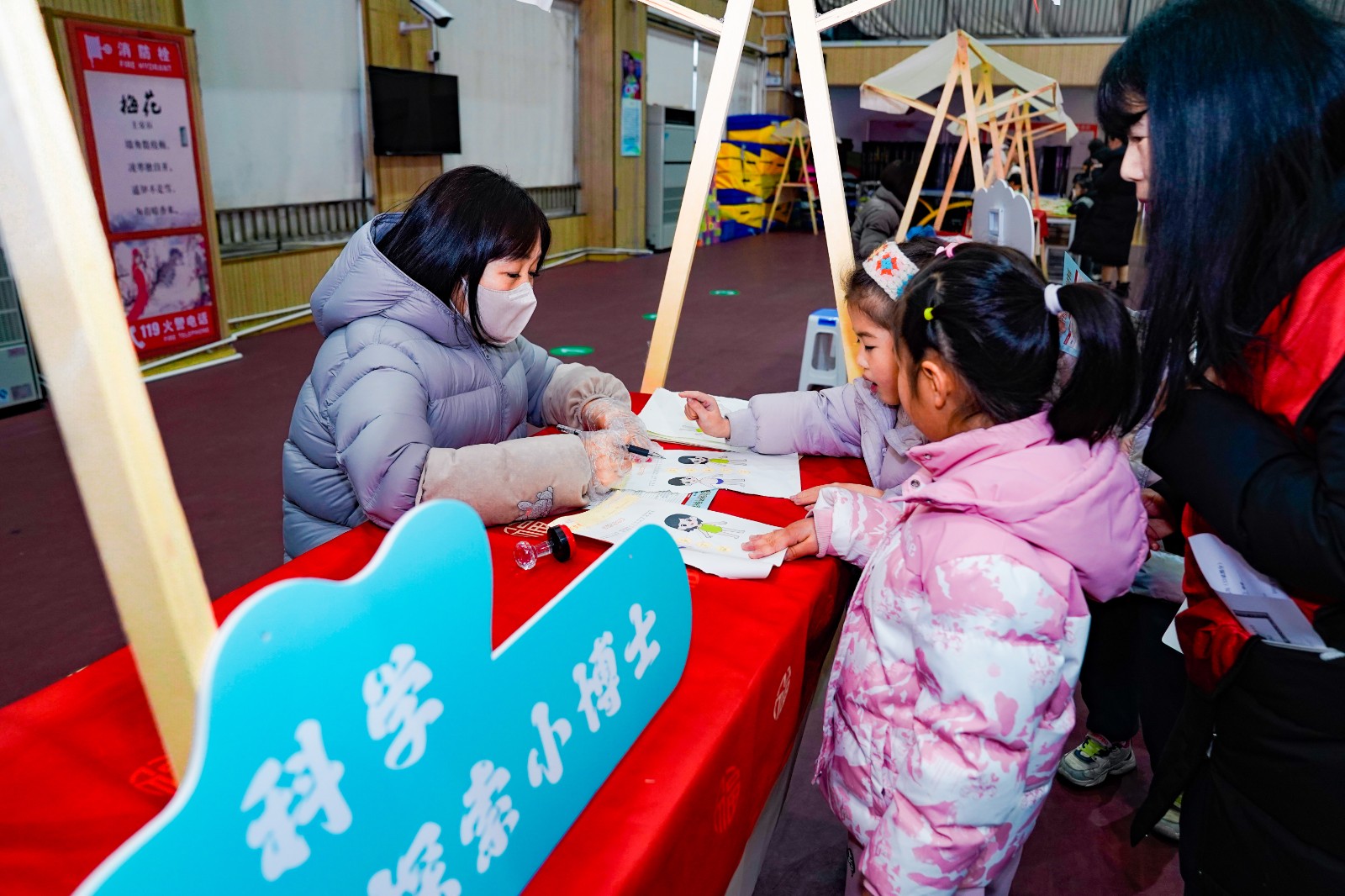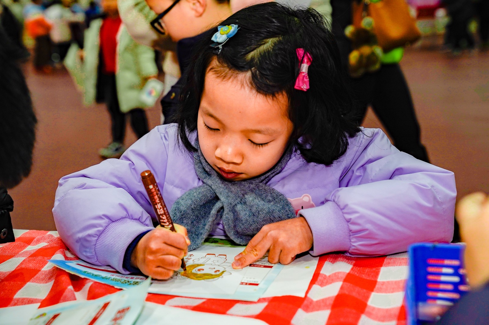 “炫彩御宝”区内,孩子们用画笔勾勒“御宝”的可爱形象,以剪刀裁制缤纷的传统窗花,更提笔挥墨,体验书法之韵。歌声与旋律在此交织,传递纯真童心。他们以多样艺术创作为媒介,尽情释放天性,展现“小艺术家”的灵动手巧与无限创意。