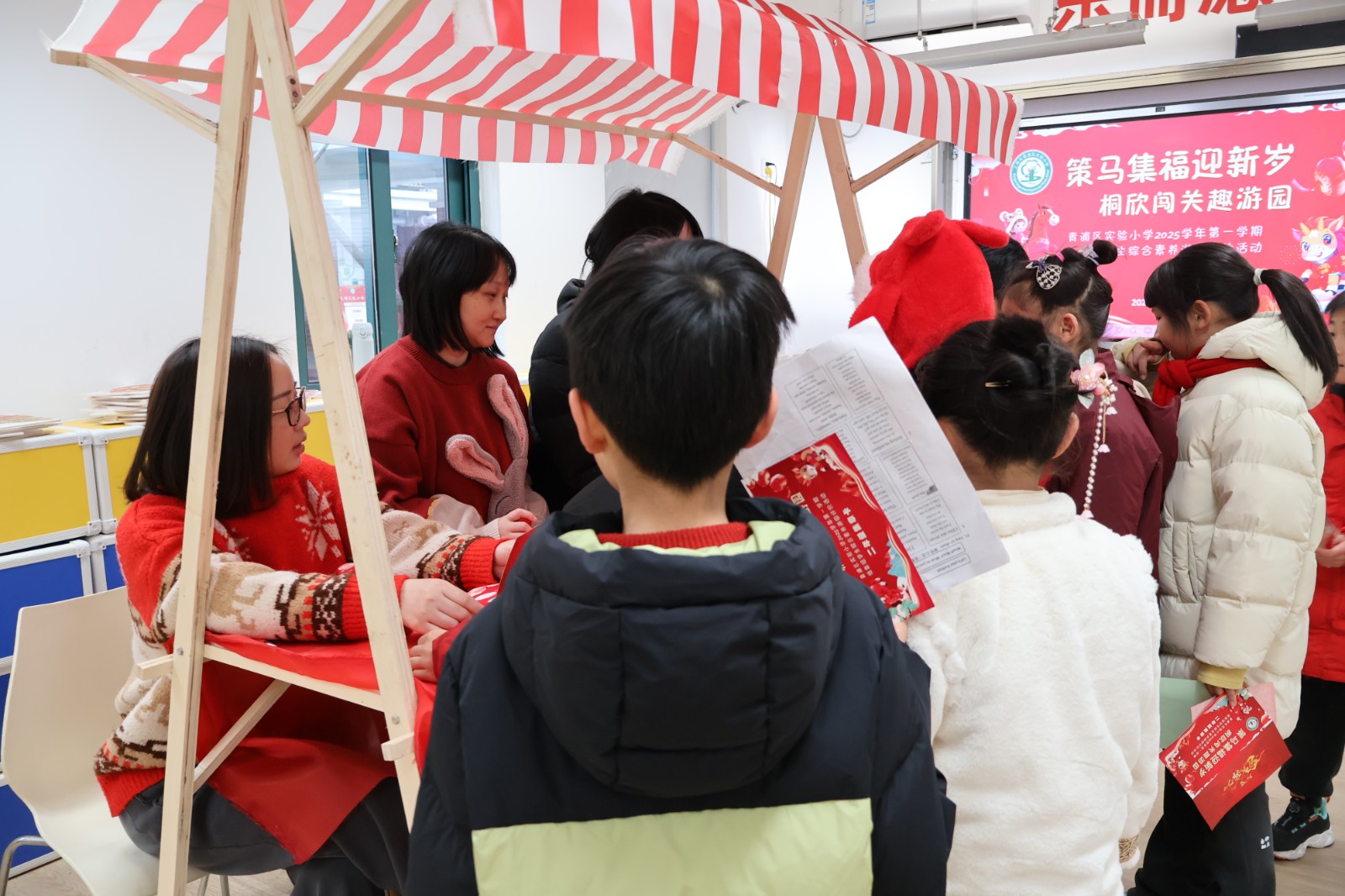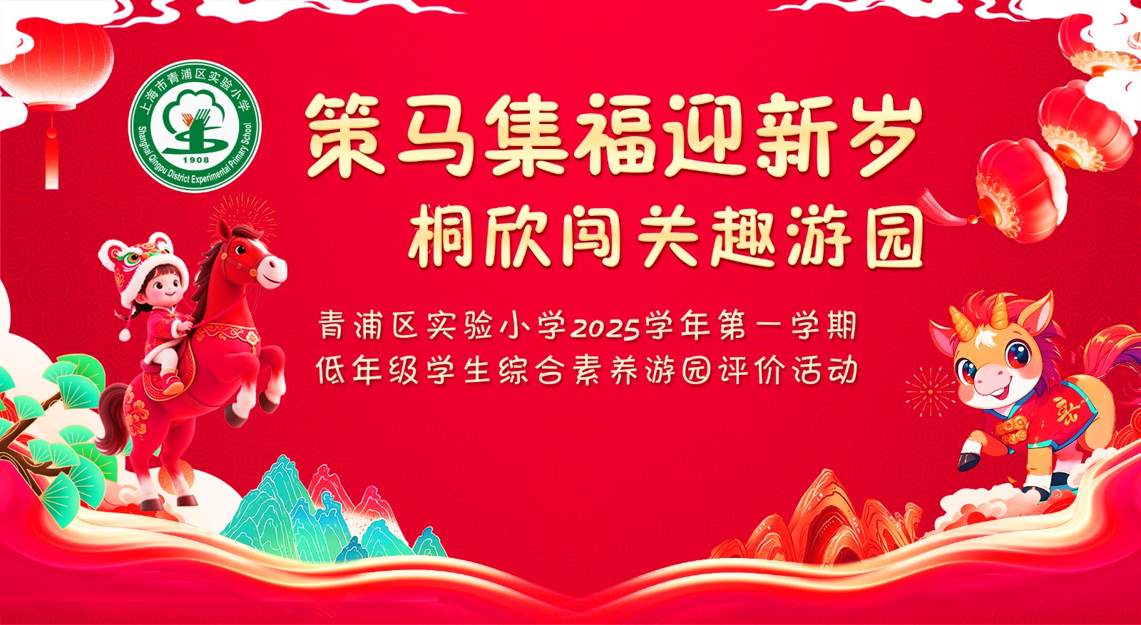 策马集福迎新岁,桐欣闯关趣游园——青浦区实验小学低年级学业成果展评游园会热热闹闹开锣啦!这次游园会把九门学科的素养“藏”进了闯关游戏里,家长志愿者们化身“引导员”,带着孩子们解锁一个又一个趣味关卡,收集九枚不同的福。
