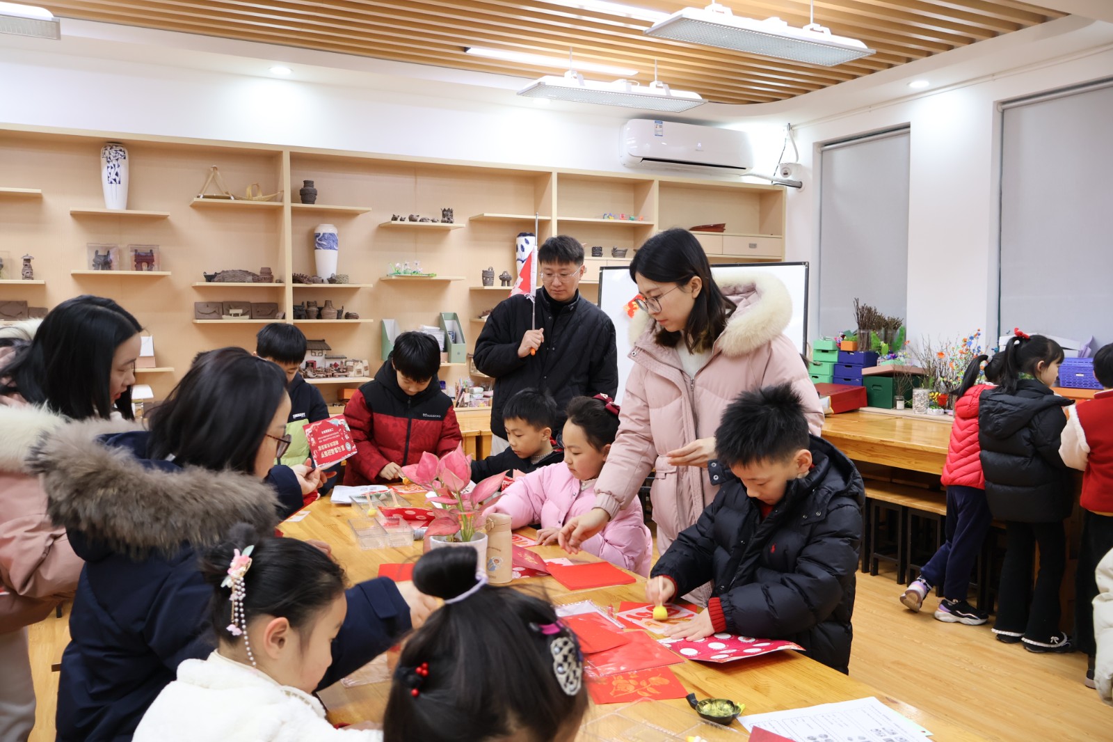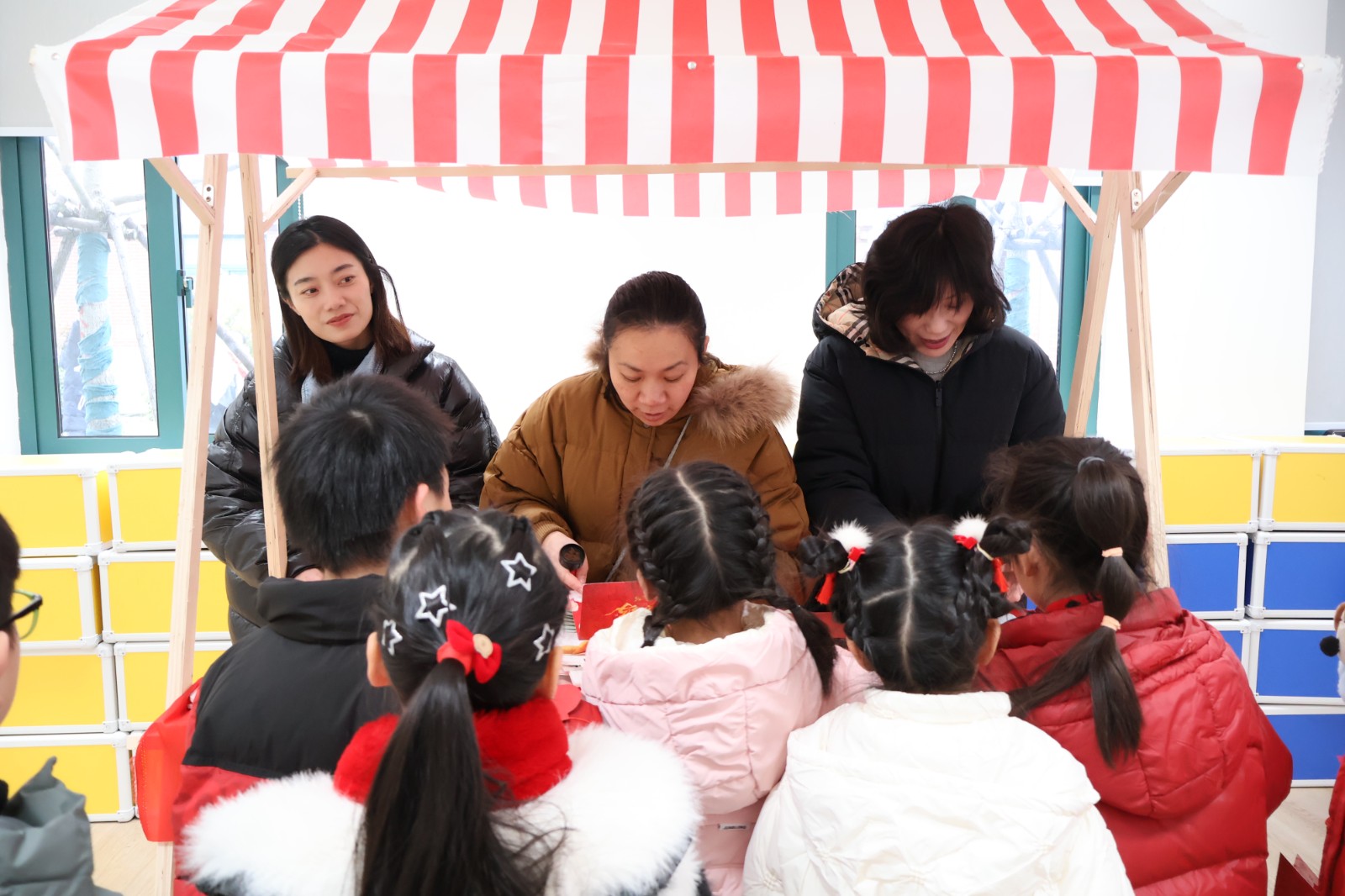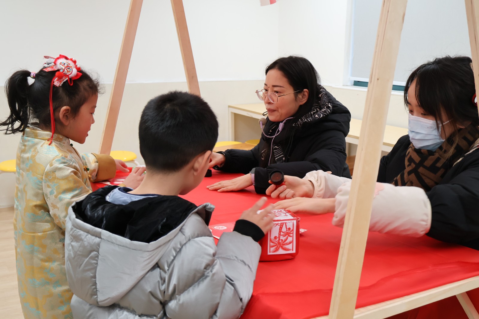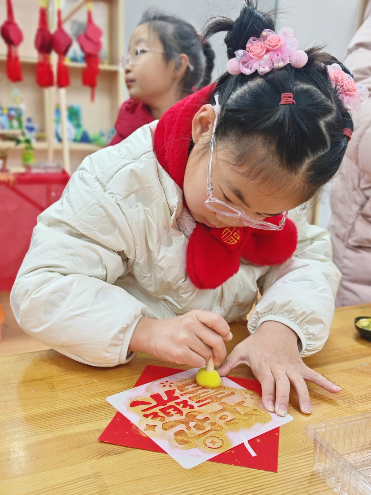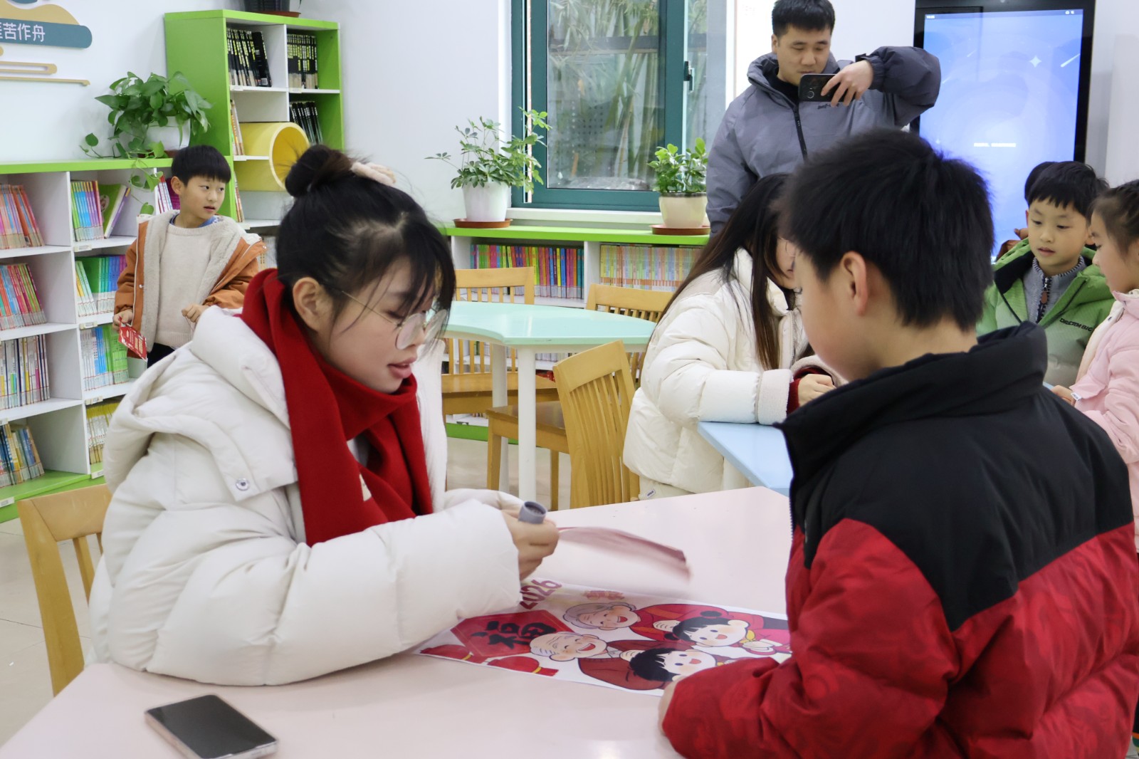 语文关秒变“年货采购摊”,拼读音节就能“买”到新年美食,在实践场景中夯实语言基础;英语“翻翻乐”里,小家伙们捧着卡片沉浸式练对话,大胆表达的同时提升语言运用能力;美术“福”印连连的摊位前挤得满满当当,每个娃都印了吉祥斗方和挂件,用画笔和印章传递新年祝福,展现审美与动手素养;数学“转转乐乐”、“消消乐”、“积木搭建”等数学游戏将计算、空间思维等知识点转化为通关密码,孩子们在动手操作中感受数学魅力;音乐“乐欢唱”的舞台上,小朋友们唱跳不停歇,把新年喜悦全唱进歌里;科学学科的“灯谜猜猜猜”摊位上,孩子们欣赏剪影猜猜动物习性,激发孩子们的观察与推理能力,感受自然科学的奥秘;“马年送‘福’”就更有意思,益智玩迷宫,每一步都有小惊喜,科普又有趣;劳动关里当“小当家”、做“手艺人”,整理书桌又剪窗花,在劳动中培养责任意识与实践技能;体育投掷、跳远赛场上同样精彩,孩子们精神抖擞、奋勇争先,展现出蓬勃的活力与强健的体魄。