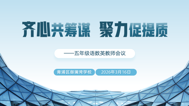 为扎实推进毕业班教育教学工作,切实提高教育教学质量,统一教学思路,明确提质举措,凝聚育人合力,2026年3月16日下午,御澜湾学校特召开主题为“齐心共筹谋,聚力促提质”五年级毕业班教师工作会议。校长顾文荣、副校长刘萍、教学处各学科分管以及五年级全体语数英教师参加了本次会议,会议由学校党支部副书记沈红丽老师主持。
