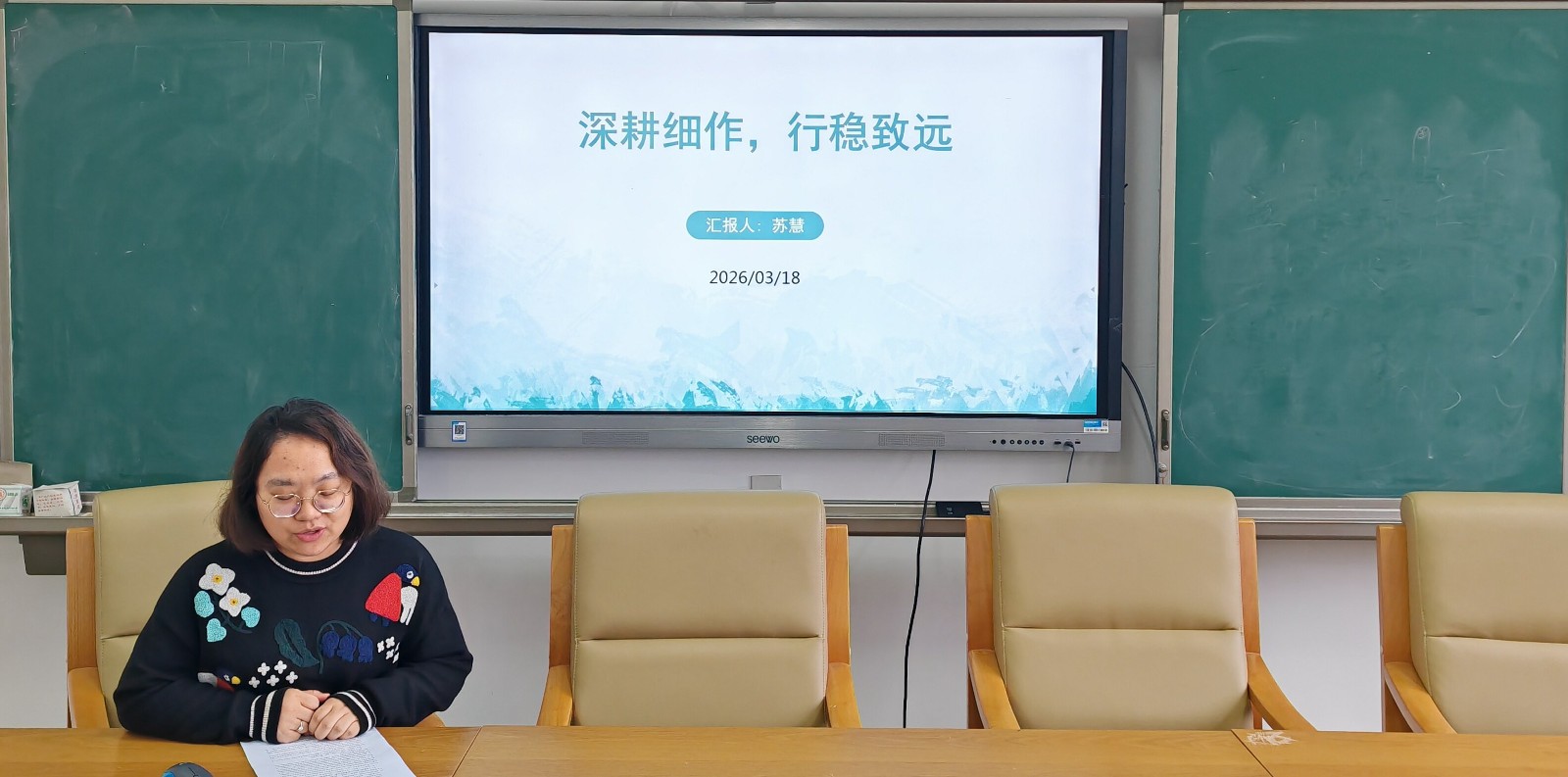 接着,备课组长苏慧老师以“深耕细作,行稳致远”为主题,从凝心、对标、深耕和精设四个方面分享了备课组在教学和作业设计中的经验。