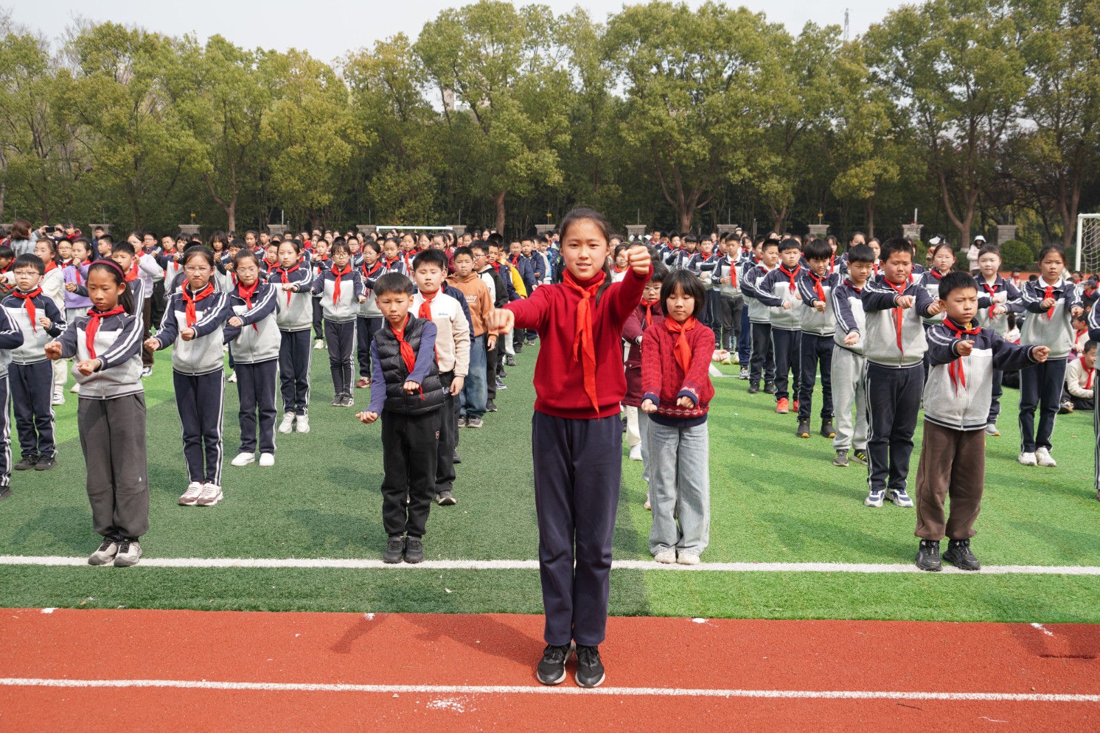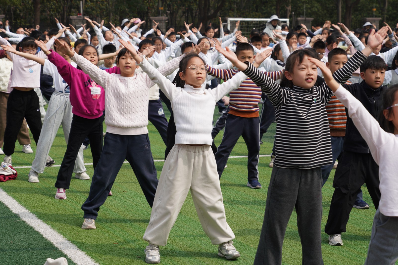 “一二三四,一二三四……”激昂的广播操音乐响起,全校广播操展示正式开启。各班同学精神抖擞地站在指定位置,目光坚定、身姿挺拔。