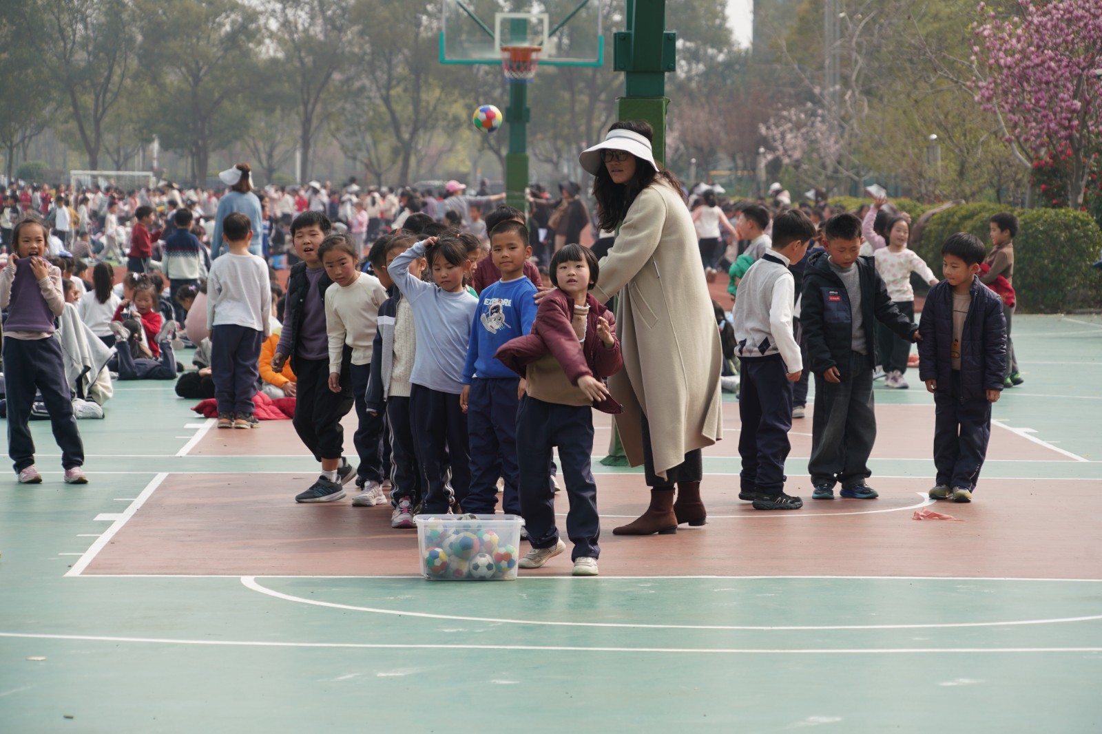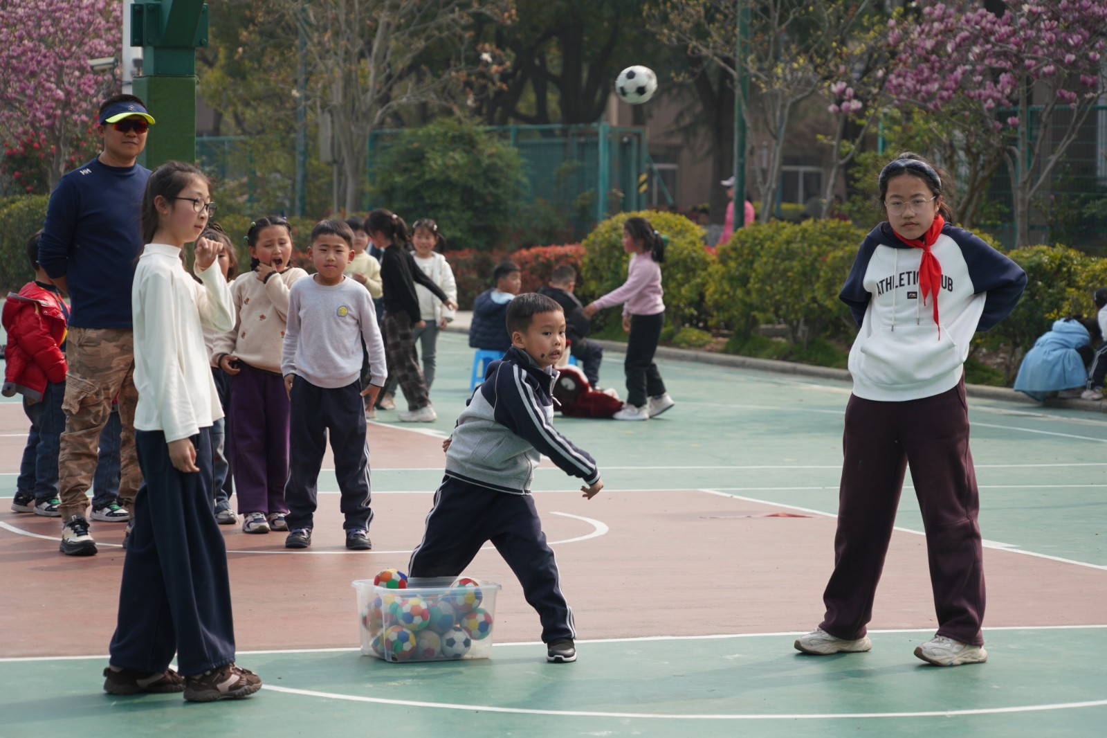 一年级·海绵球投掷:篮球场上,小选手们排起整齐的队伍,紧握海绵球,眼神专注又认真。随着老师一声令下,小球在空中划出一道道温柔又有力的弧线,每一次投掷,都是对力量的挑战;每一段距离,都是为班级争光的心意。累计的总距离,不仅是孩子们努力的见证,更凝聚着班级的集体力量。