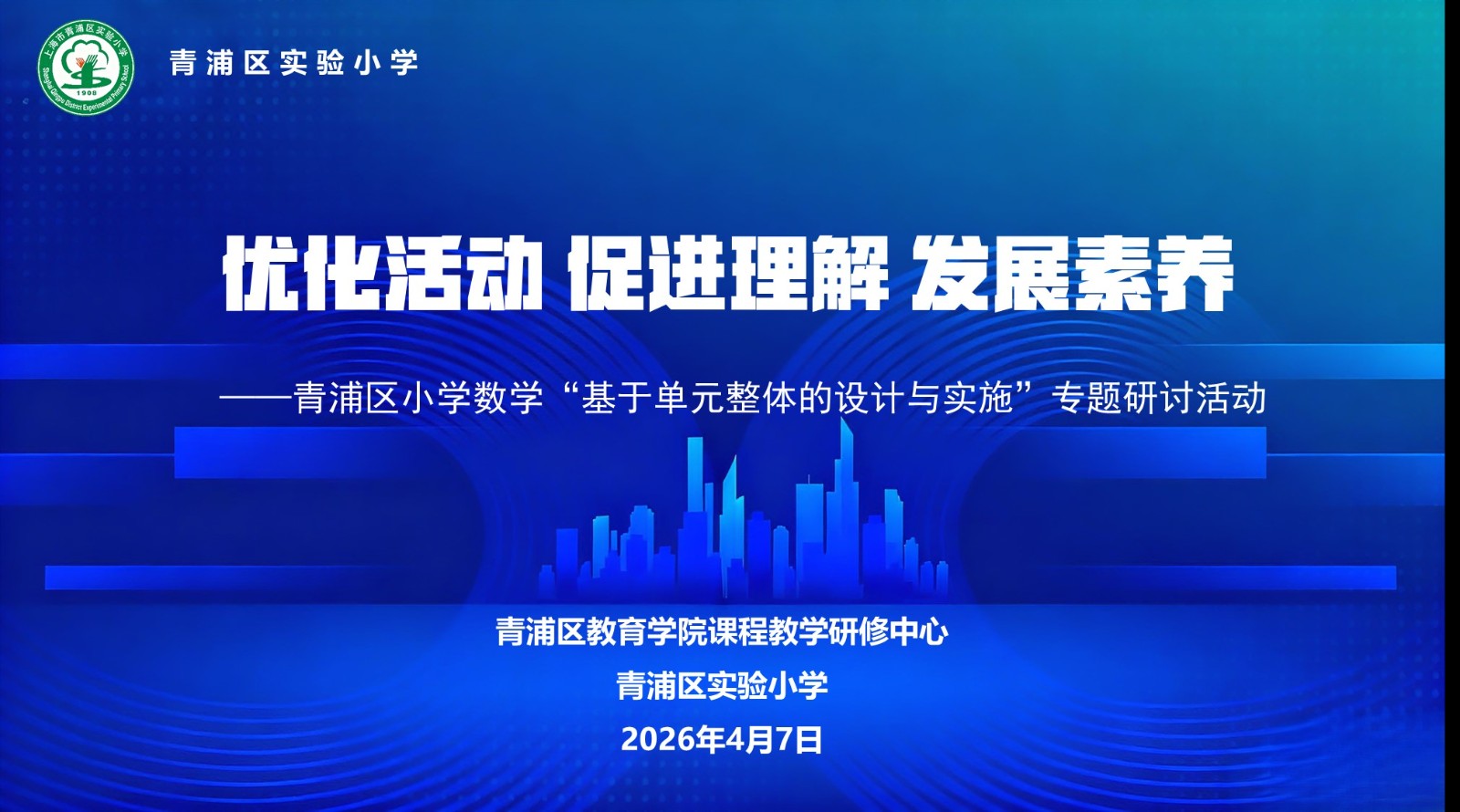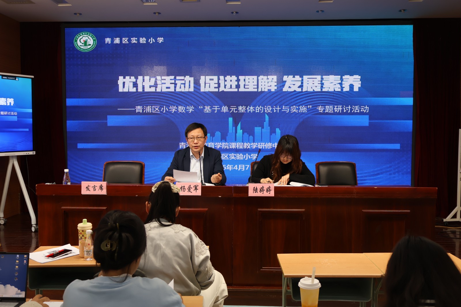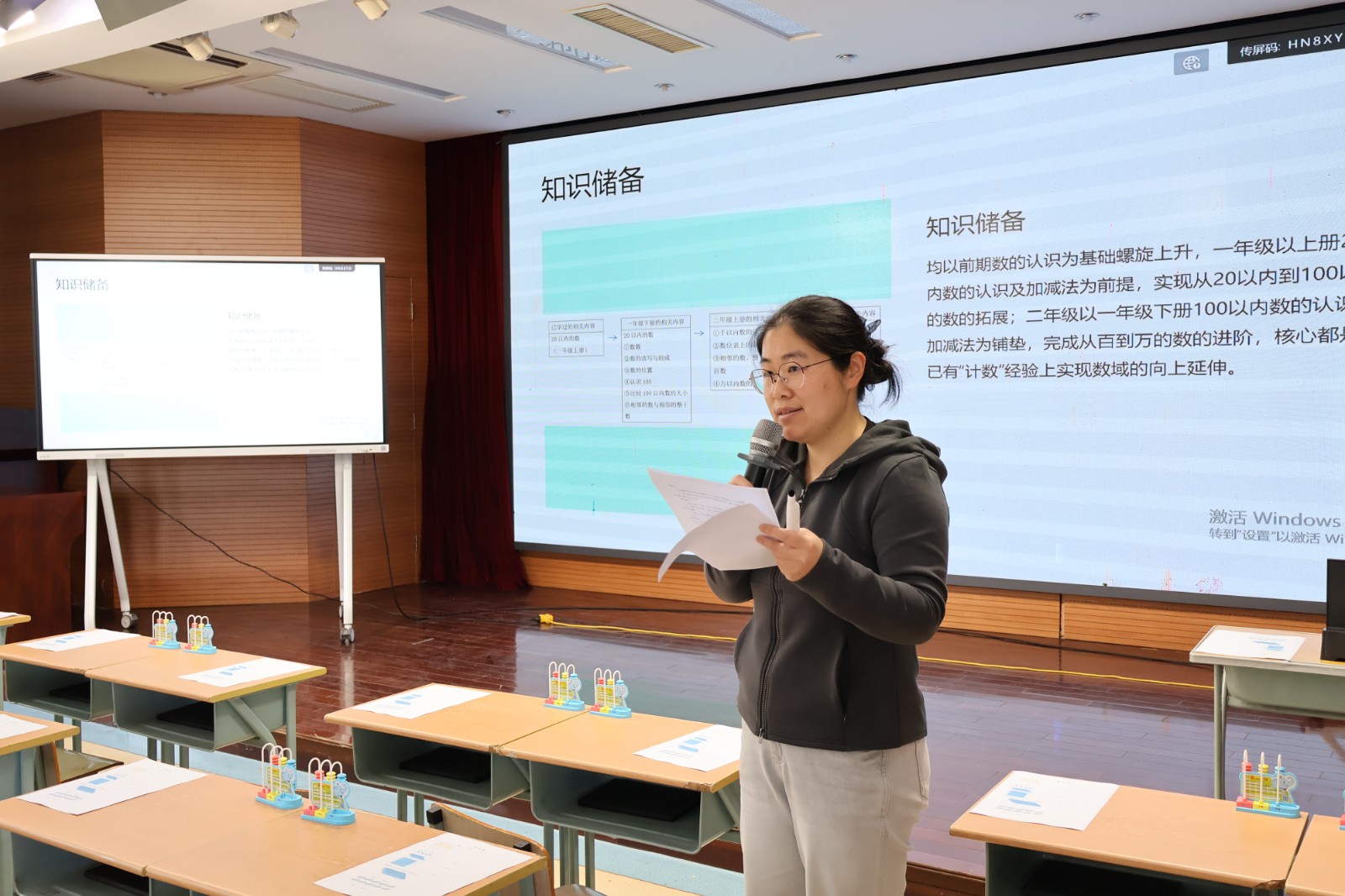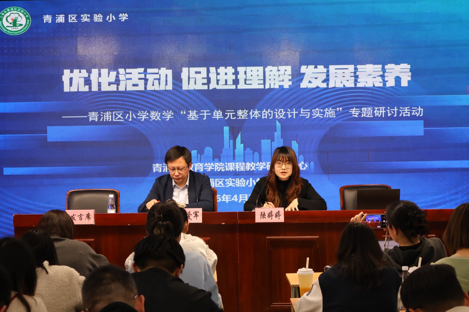 4月7日下午,青浦区小学数学“优化活动 促进理解 发展素养——基于单元整体的设计与实施”主题研讨活动在青浦区实验小学顺利举行。青浦区小学数学学科教研员杨爱军老师、陆婷婷老师,实验小学徐峰校长、朱莉莉书记,全区一、二年级数学教师以及实验小学全体数学教师共同参与了此次活动。本次活动由杨爱军老师主持。