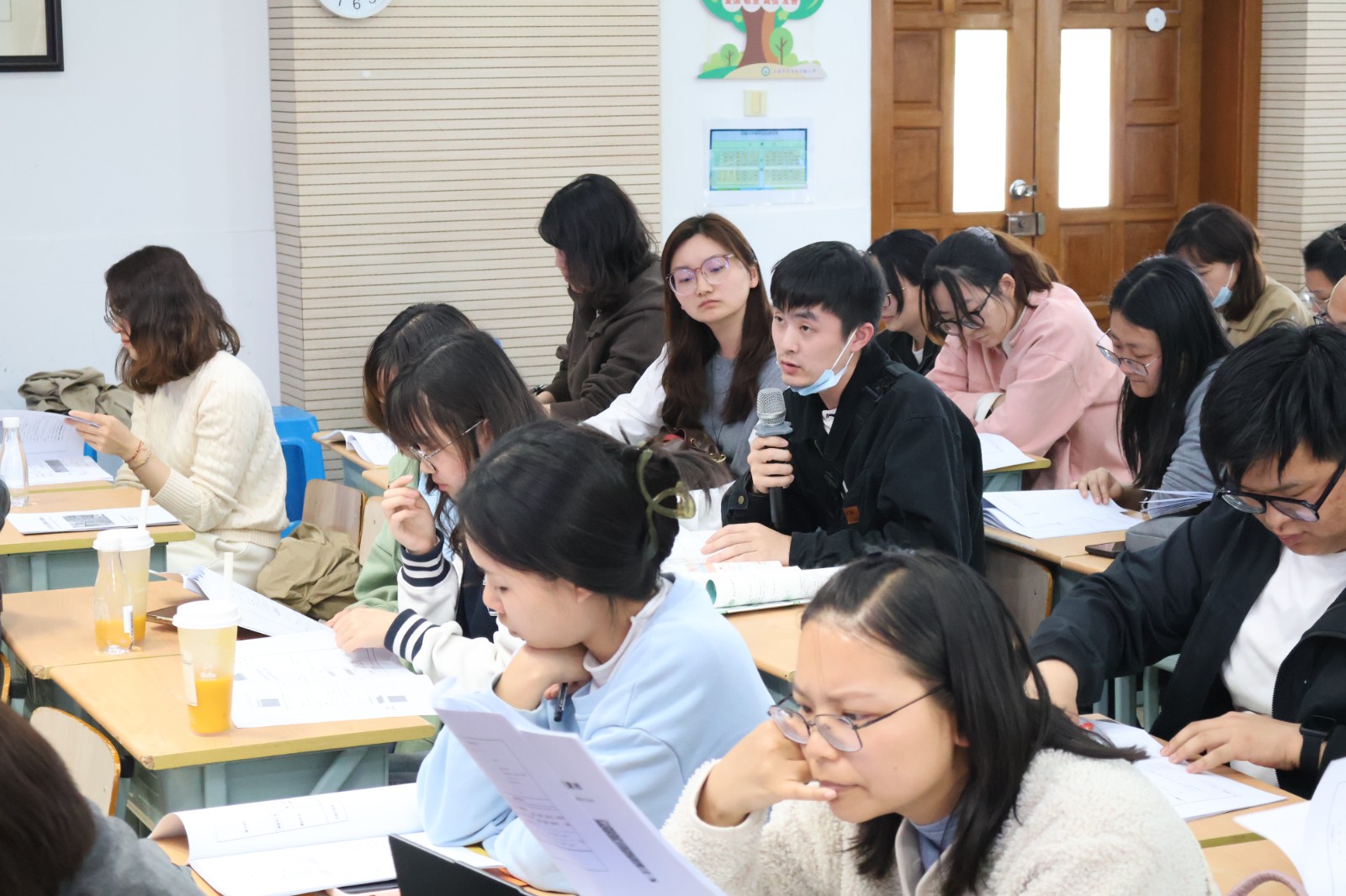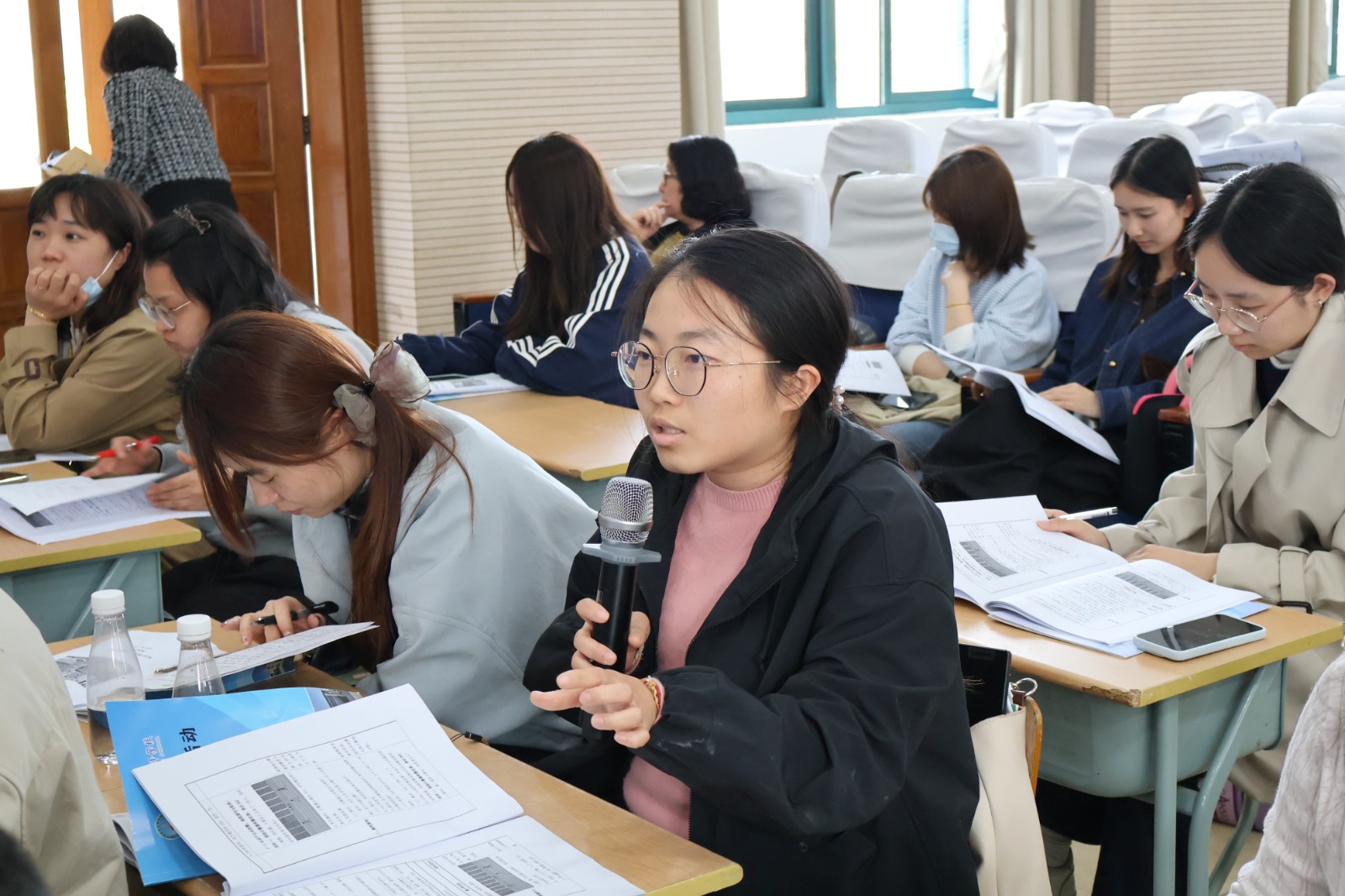 紧接着,在杨老师的主持下,现场听课老师围绕两节课展开了交流与研讨。观课老师们首先肯定了两节课的共同亮点:两位教师均精准把握了数的认识教学的核心要义,通过丰富的操作活动帮助学生建立数概念,体现了“做中学”的教学理念。随后,老师们提出了一些自己的思考,并围绕“三个助手中的计数器是否可以替代实物”“教材版本变更背景下数的读写规范及其教学应对策略”“计数单位的构建”等问题展开了热烈讨论。整个研讨过程气氛活跃,既有理论层面的深度思考,也有实践层面的策略碰撞,为一线教师提供了可操作、可迁移的教学改进路径。