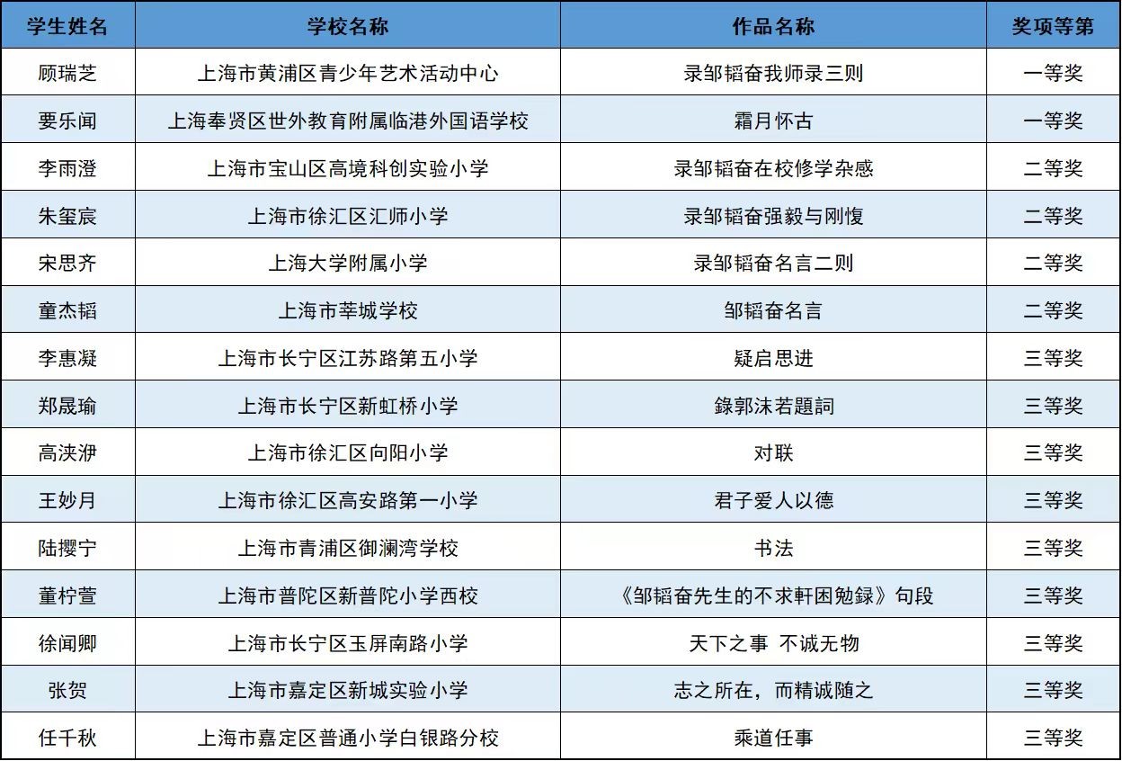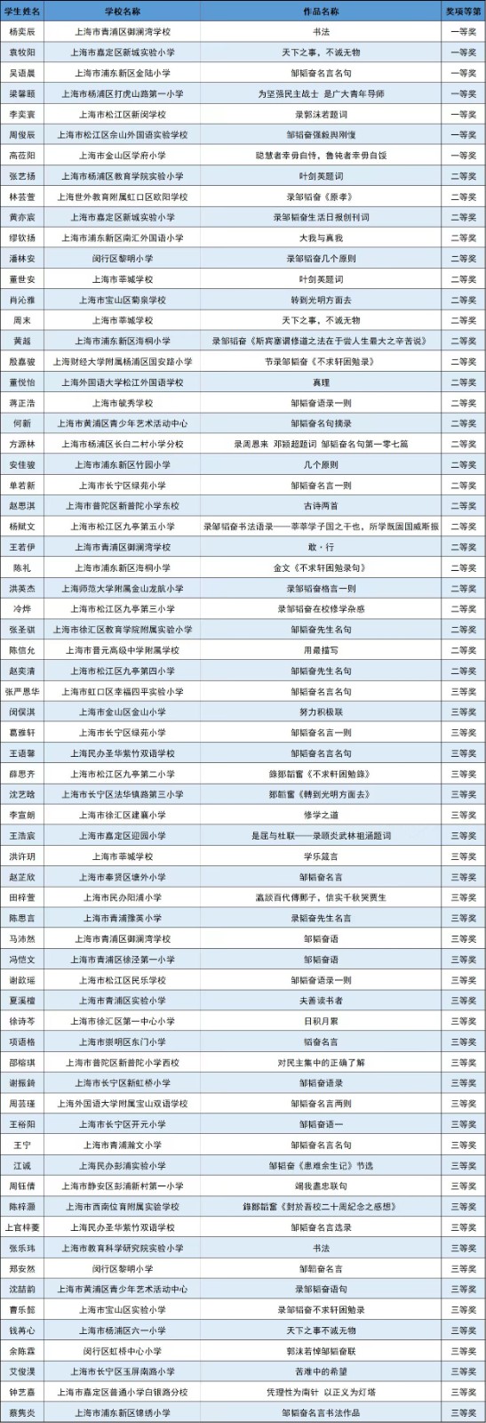 获奖名单如下:一等奖 杨奕辰;二等奖 王若伊;三等奖 马沛然、陆撄宁。