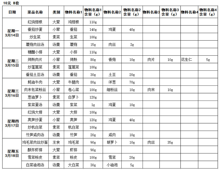 一周菜单 |