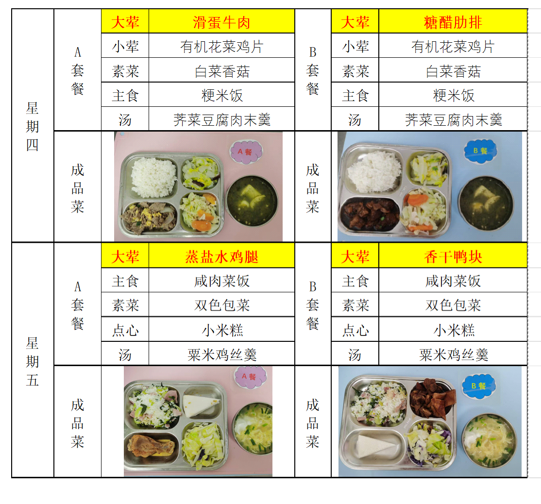 2025学年第二学期实验小学学生营养午餐菜谱(第4周)