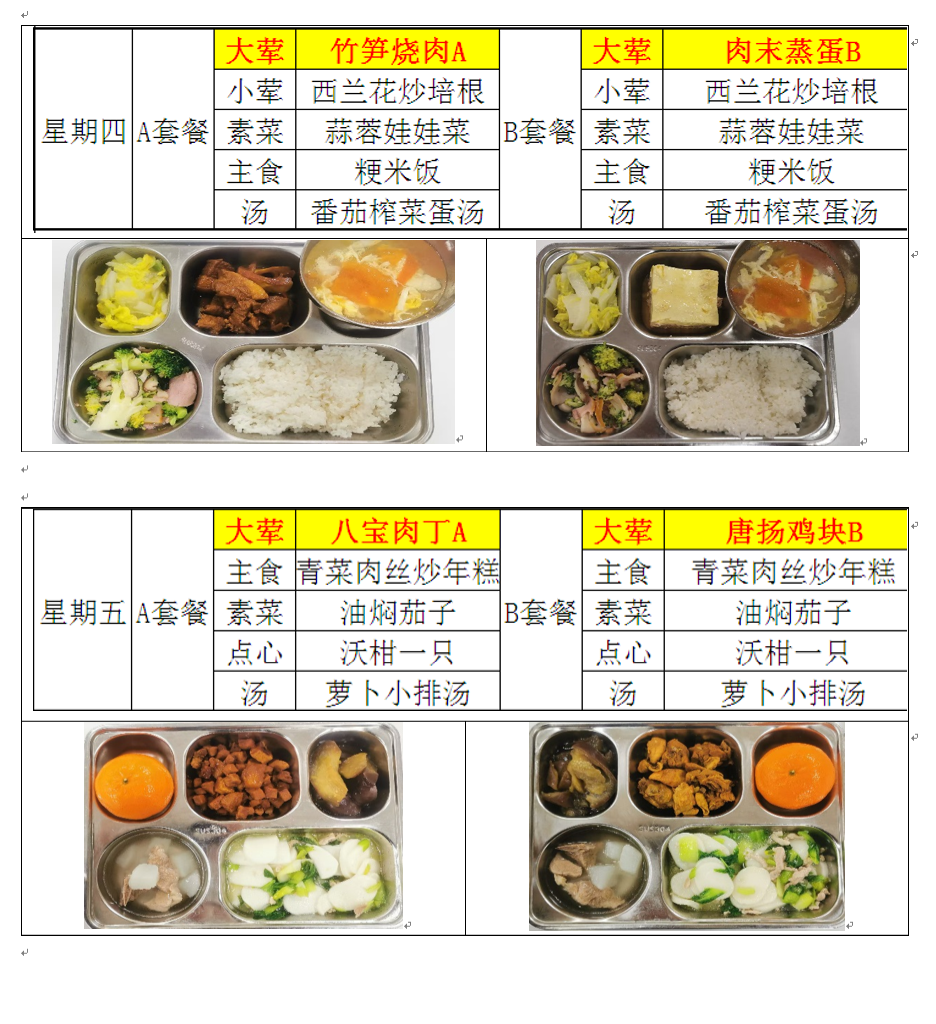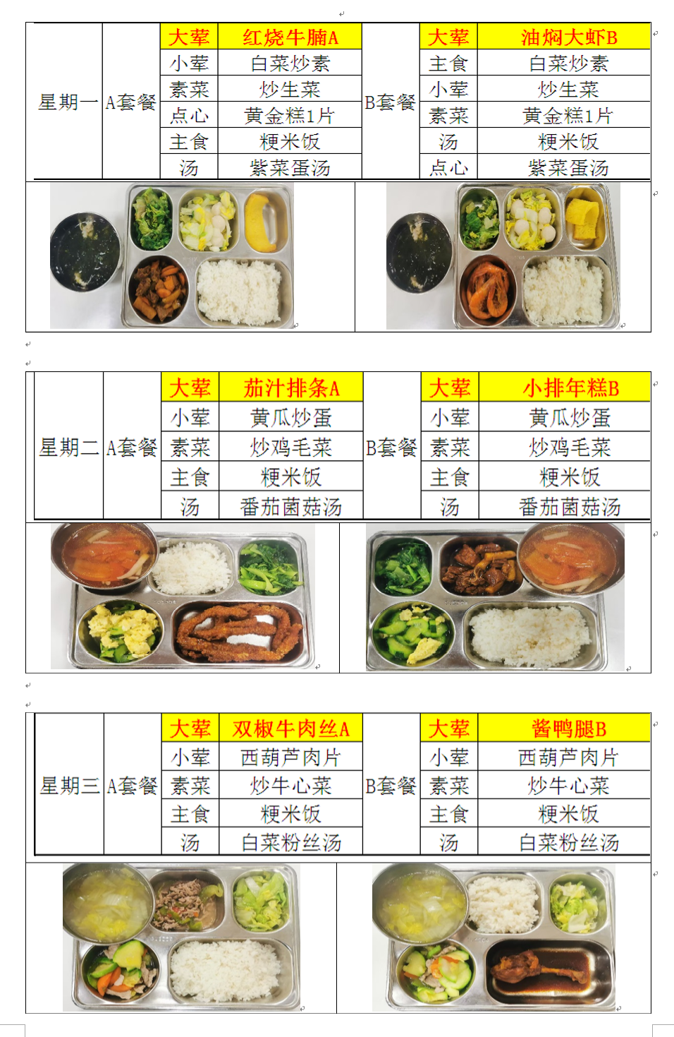2025学年第二学期实验小学学生营养午餐菜谱(第5周)