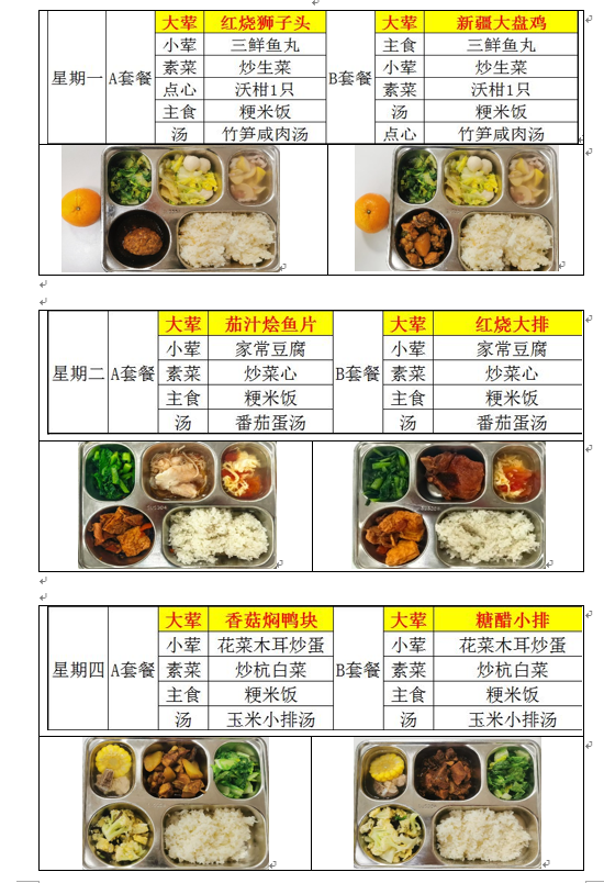 2025学年第二学期豫英小学学生营养午餐菜谱(第6周)